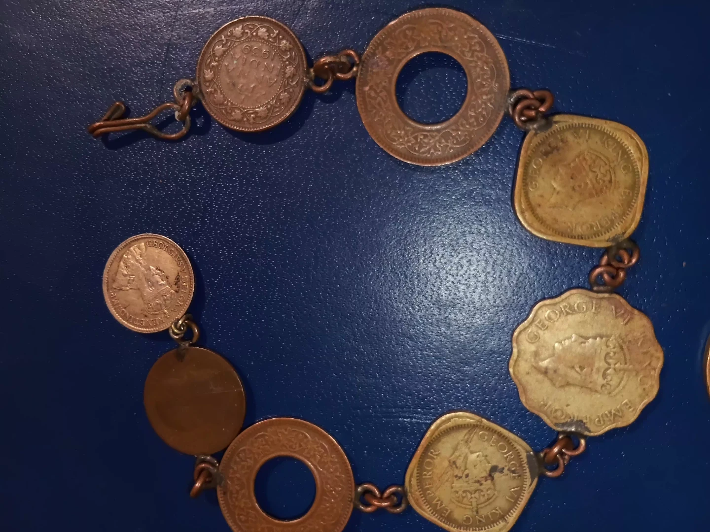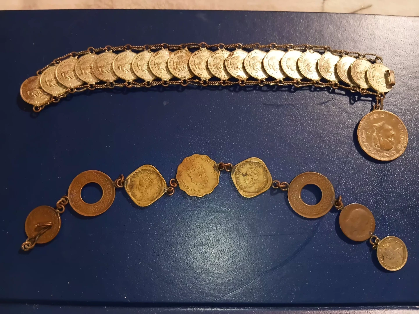One is Vintage British India Authentic Coin Chain Bracelet Featuring King George VI Emperor.