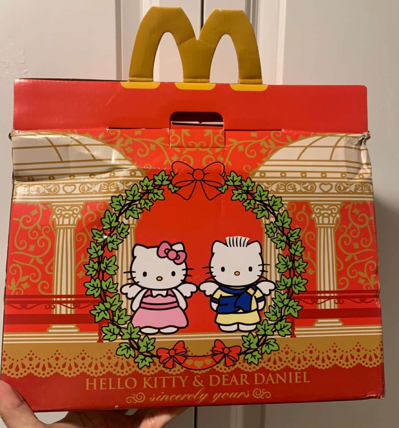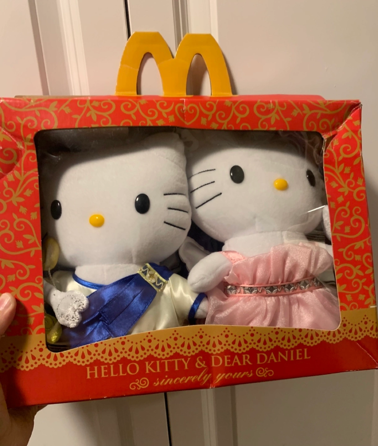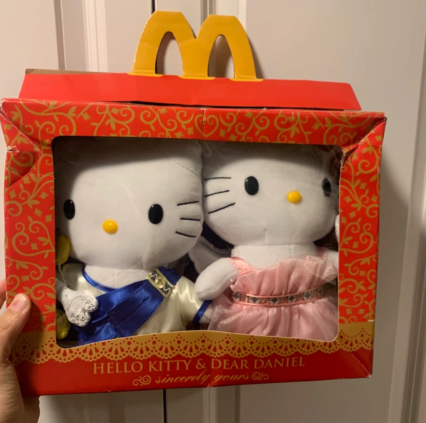 Vintage Rare McDonald's Hello Kitty plush toys. Hello Kitty and Dear Daniel Comes in original McDonald's box. Collectible item.