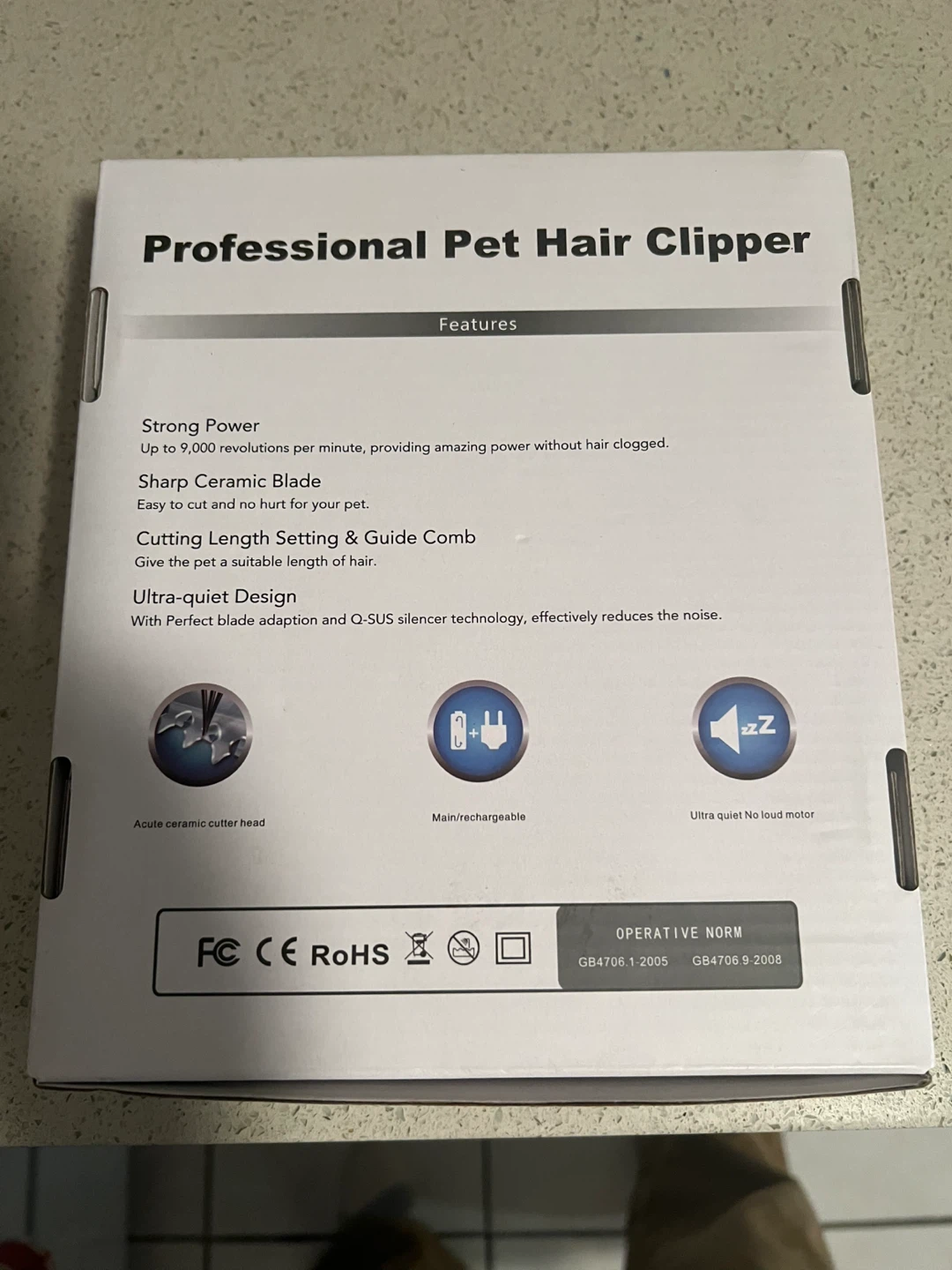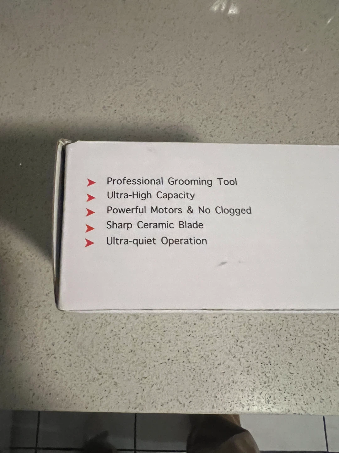 It's a professional grooming tool with an ultra-high capacity battery, powerful motors that won't get clogged, and a sharp ceramic blade for ultra-quiet operation.
