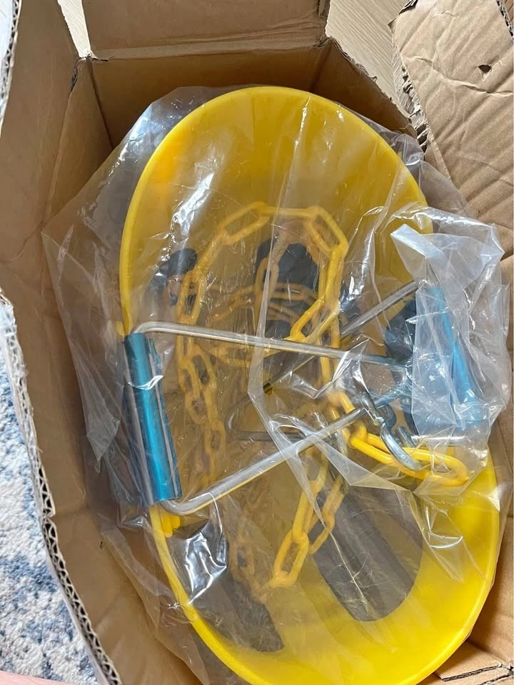 Brand new in box, opened to take photos, never assembled. Perfect size for infant over 6 months, with an EVA seat original size of 13'' x11.4''x11.4''(D*W*H) and adjustable 59'' iron swing chains. It can hold up to 300 pounds and is perfect for infants, toddlers.