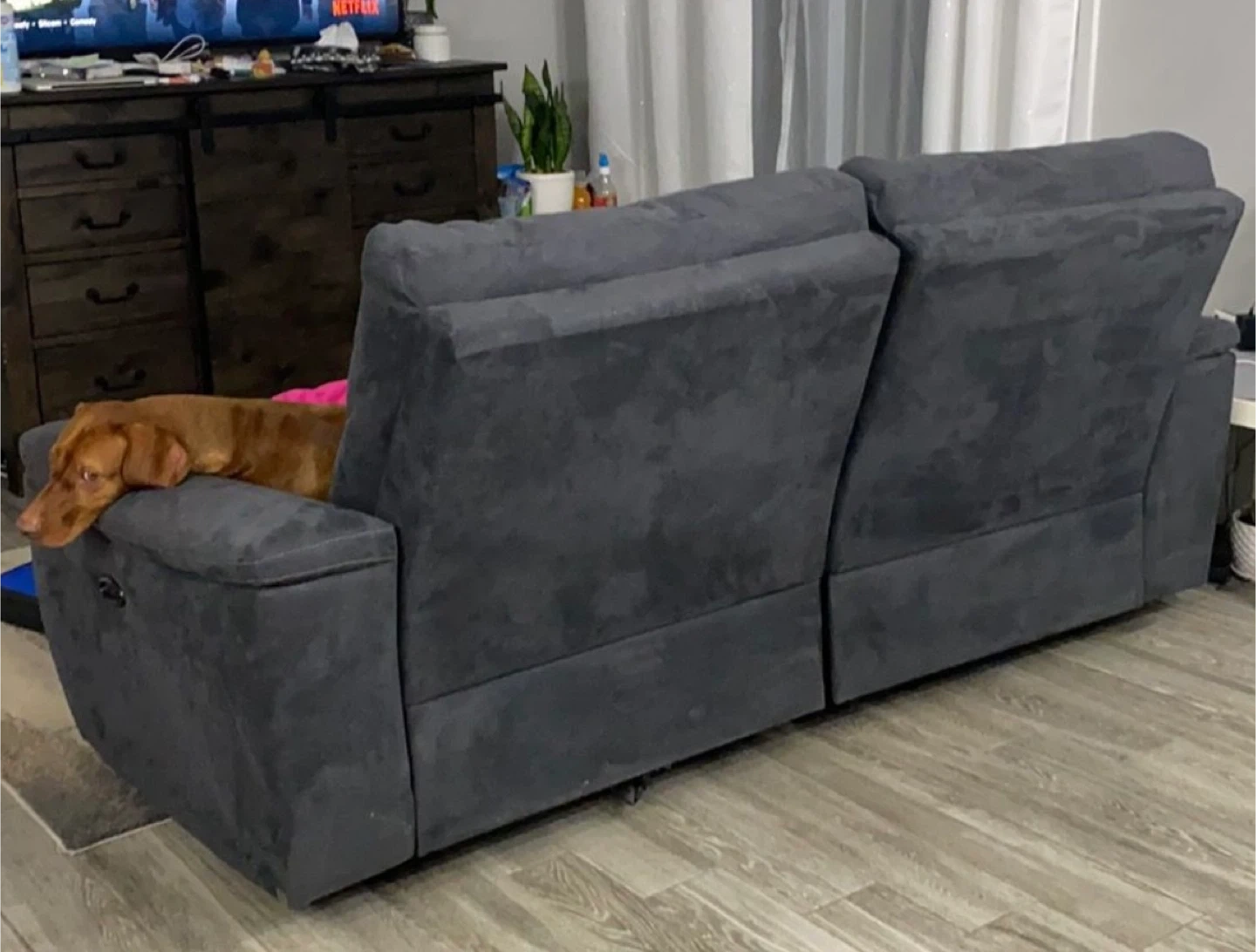 15FOR SALE: Elran Genuine Suede Reclining Sectional - Model 4066D90 Price: $1,200 OBO Modular, you can mix and match the pieces to make different configurations as small as a two-piece love seat (about 7 feet), or use 3 or 4 pieces together without the corner to make a straight couch up to 12 feet long. (See photos for the love seat configuration). High-quality Canadian-made Elran sectional in genuine suede. This is a substantial L-shaped sectional, approximately 9 to 10 feet on each side - perfect for large living spaces. Original Price: ~$5,000 (2016) Specifications: •Brand: Elran (Montreal-based, premium manufacturer) •Model: 4066D90 •Material: Genuine suede (excellent condition) •Configuration: L-shaped sectional with reclining ends Condition: The suede has held up exceptionally well over 9 years - one of the best couch fabrics we’ve owned. Overall excellent condition with the following honest disclosure: Minor Issues (both easily repairable): •Small, clean knife cut in one backrest (hardly noticeable, could be easily repaired) •One recliner mechanism catches slightly when opening/closing (we simply stopped using that one recliner, but could be serviced) •Needs cleaning due to pet hair (dogs) Why we’re selling: downsizing This is a quality piece from a reputable Canadian manufacturer built to last. Perfect for someone handy who can do minor repairs or take it as-is. Hard to find quality genuine suede couches these days. Separate sections makes moving easier. Delivery available for a small fee. Questions? Feel free to message!