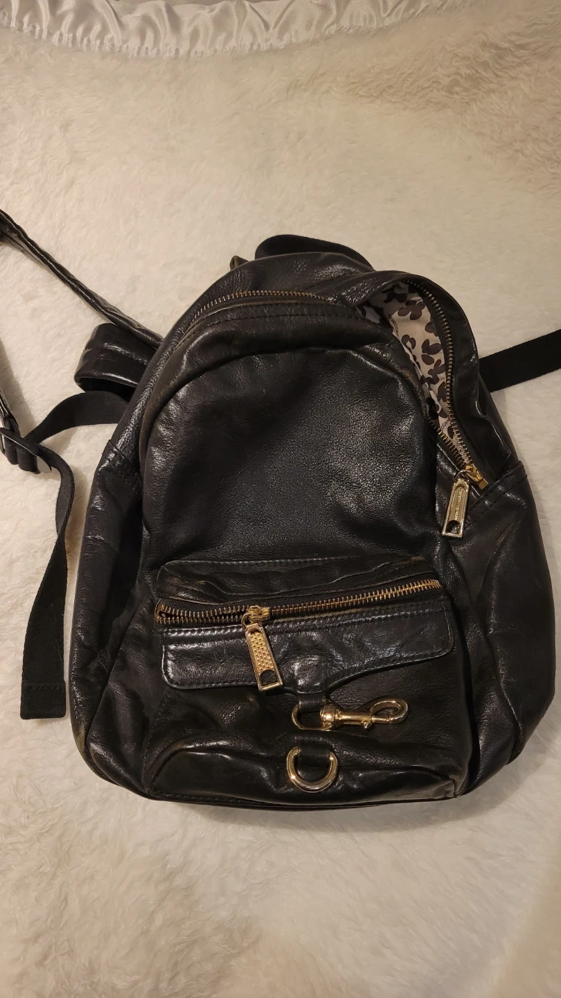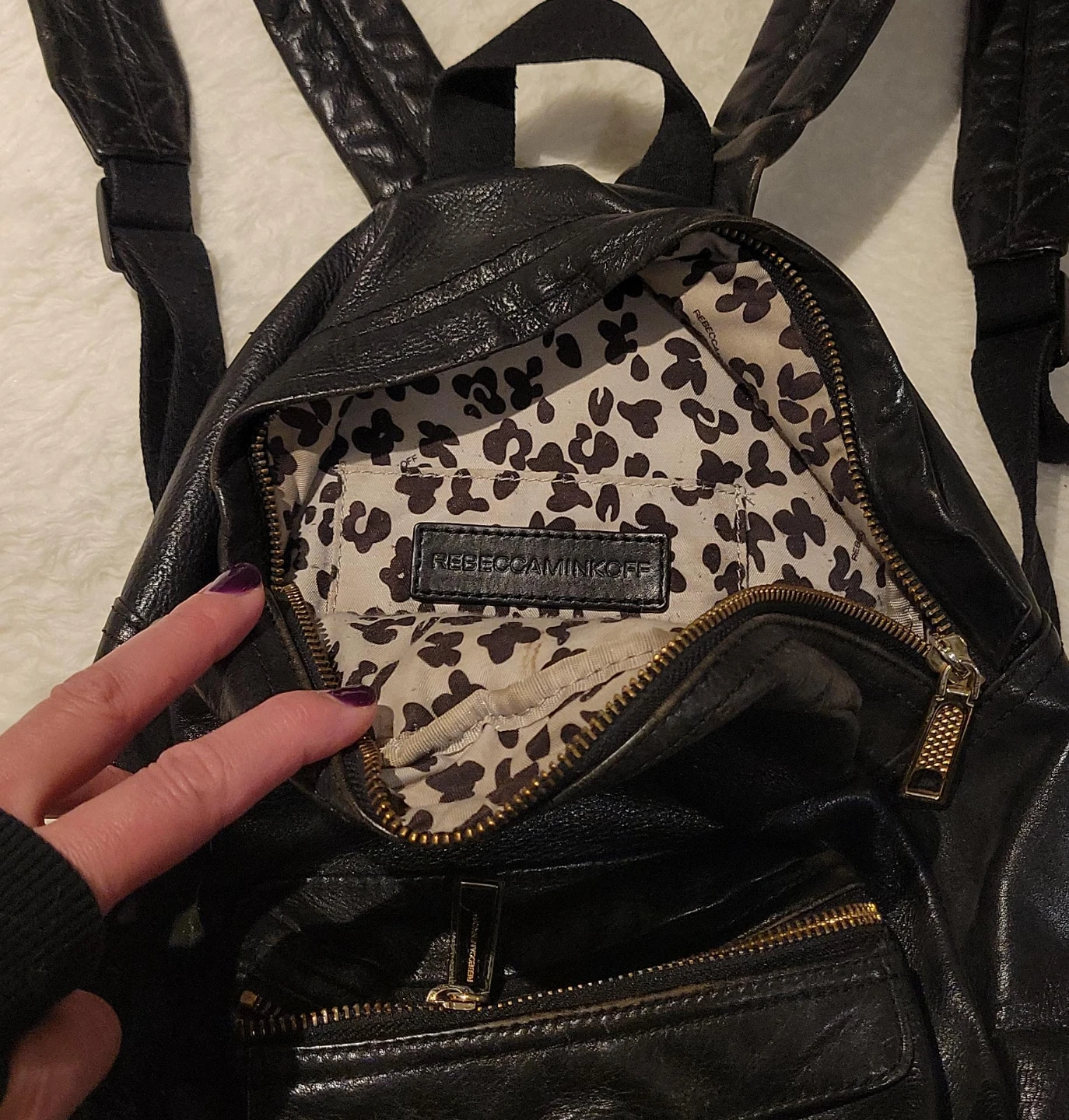 10Selling a cute Rebecca Minkoff mini backpack! It's black leather with gold hardware and a fun leopard print lining. Great for everyday use or as a stylish accessory