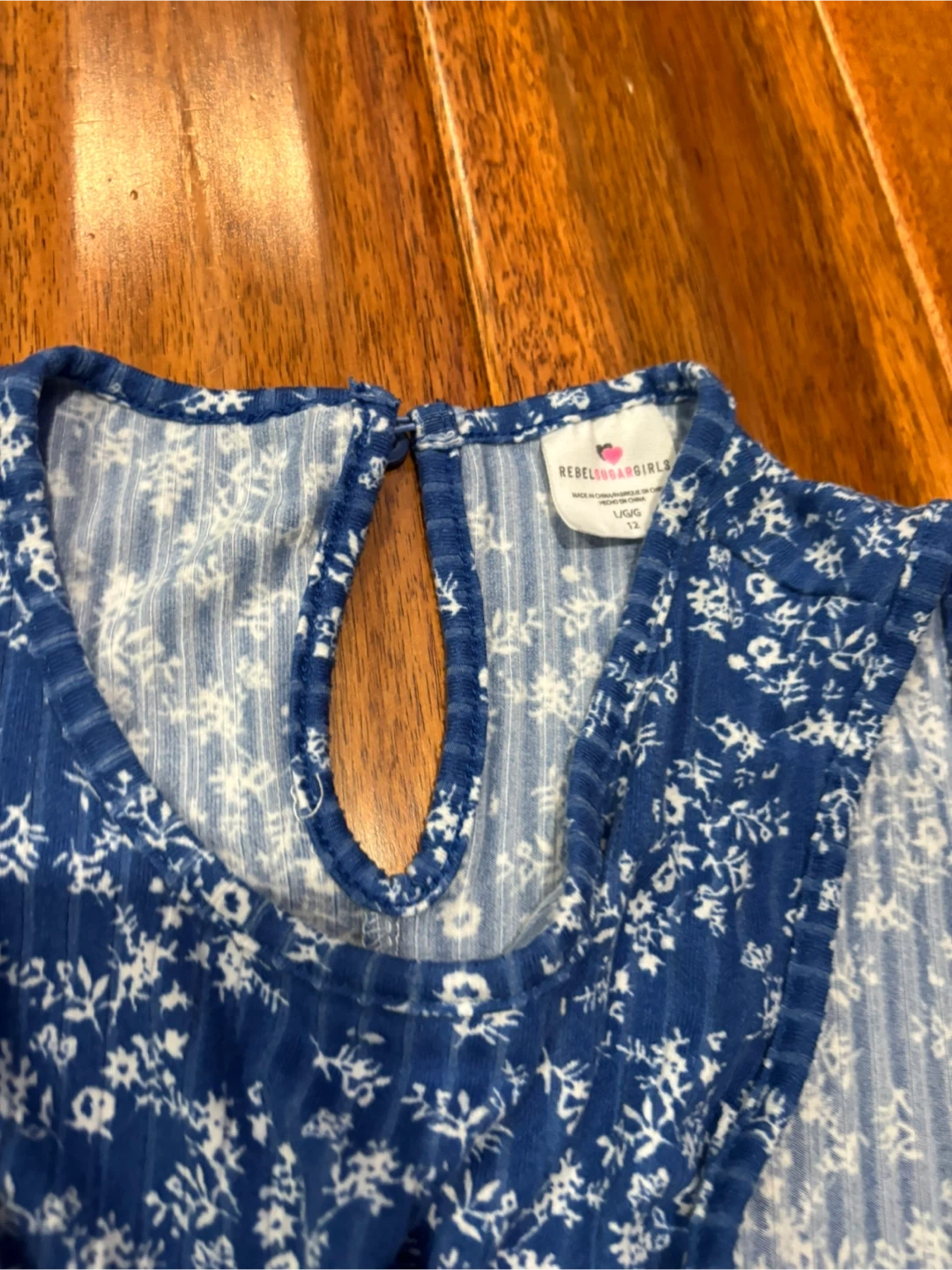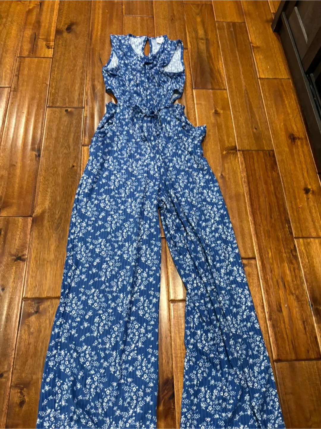 Cute blue floral jumpsuit from Rebel & Girls! It's a size L (11/12) and in great condition. Perfect for spring or summer!