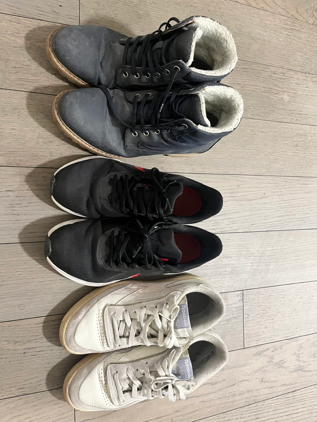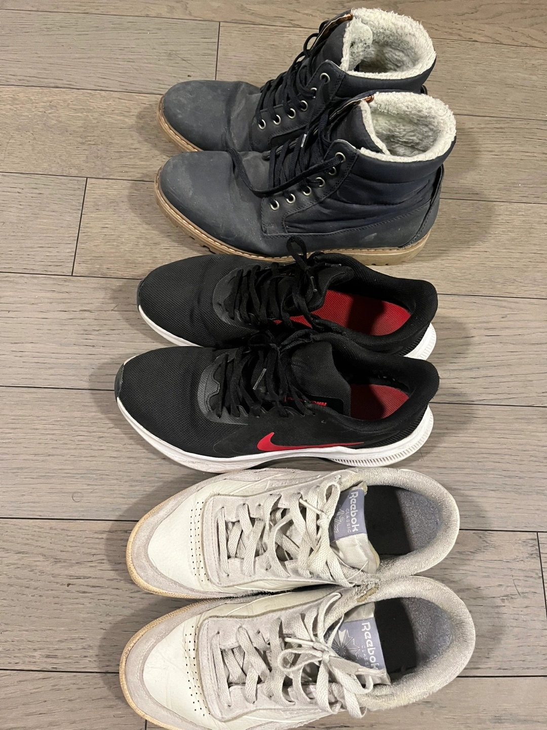 63Looking to sell all these pair in Size 9. Reebok and nike pairs in super great condition. Just need some cleaning. Dm for more pics. Prices- 50 each for Reebok and Nike pairs. 20 for the winter shoes pair