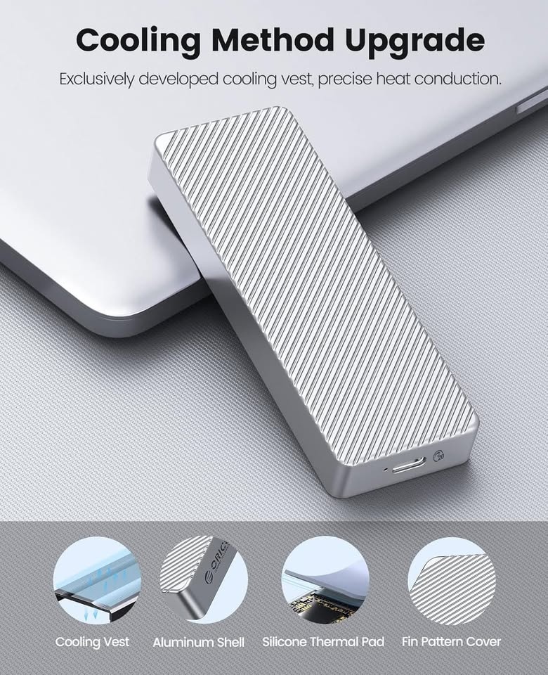 ORICO M.2 NVMe SSD Enclosure to 20Gbps USB3.2 Gen2x2 USB-C PCIe Adapter for NVMe M-Key/M+B Key SSD 2230/2242/2260/2280, Aluminum M2 External SSD Case(Cooling Vest, UASP, Trim) SSD Max 4TB-M213-Silver