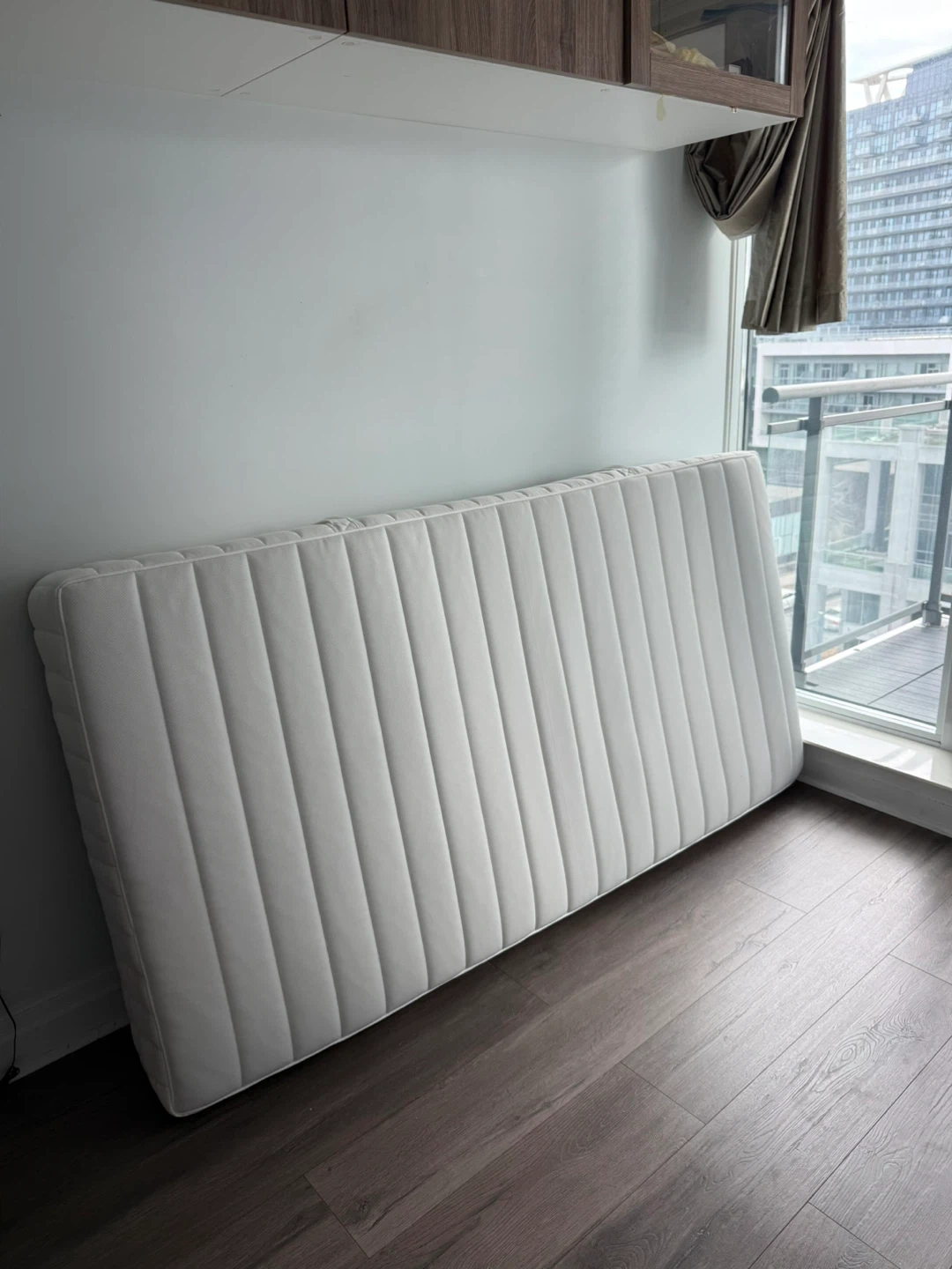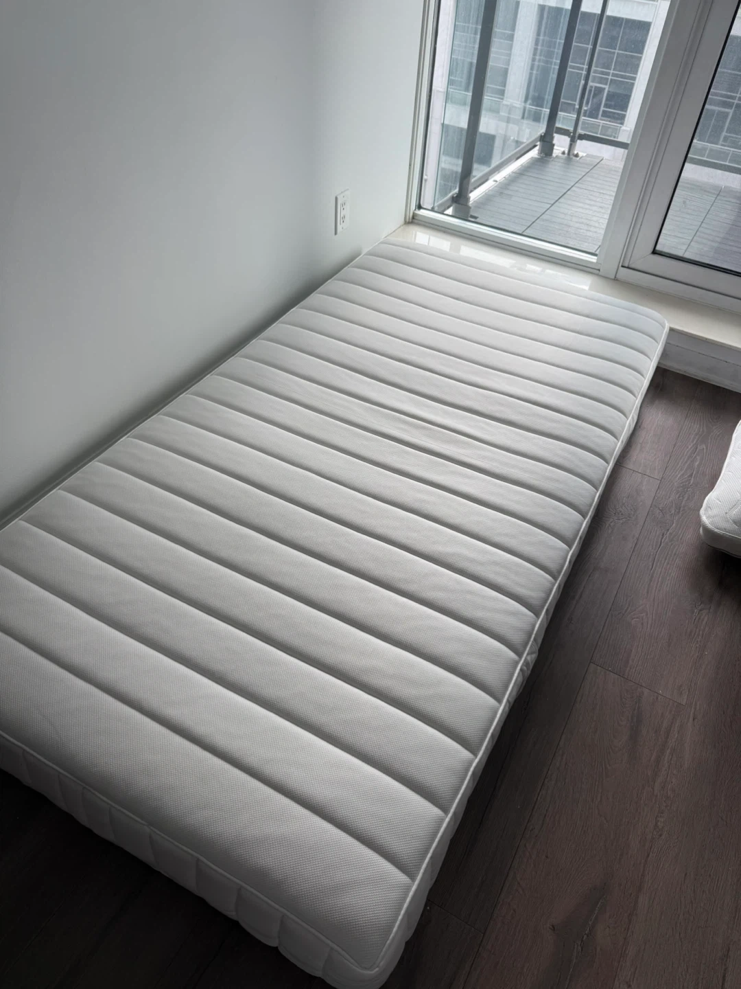 Buy & SellIKEA VALEVÅG Twin MattressIKEA VALEVÅG Twin Mattress$50This is an IKEA VALEVÅG twin mattress. It's white and has a textured, stitched surface. This mattress is suitable for a single bed.ConditionLike newWHERE TO MEETCheck LocationView MapSELLERverifiedPriscilaMimico91679 reviews1 chats·2 favorites·56 viewsSEND CHAT TO SELLERHi Priscila! I’m interested in your listing.Hi Priscila! I’m interested in your listing.Get the Karrot app to chatSign In to chat