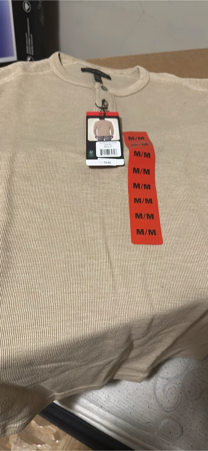 Banana Republic henley shirt, size medium. It's a multi-coloured shirt with a ribbed texture. Originally bought for $19.99 at Costco. Have in 3 colours