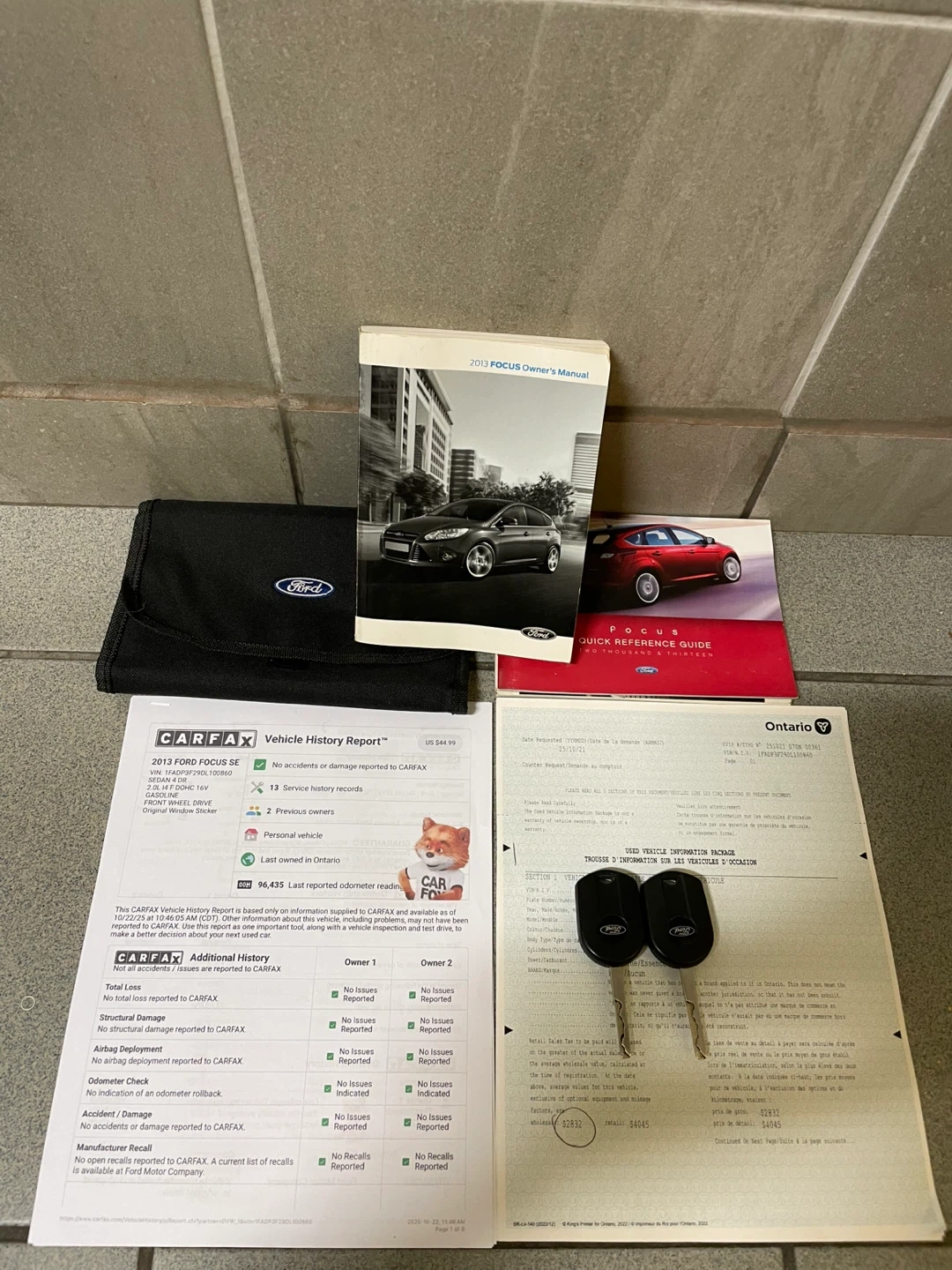 15For Sale: Automatic 2013 Ford Focus SES. 2nd Owner since 23’ Her name is Ruby Red! 2.0L 4 cylinder Front Wheel Drive SYNC 2 sets of Keys || Clean title || No Accidents Engine & Transmission are in great working order. Idles very calm and shifts perfectly with no hesitation. Rust free underbody and lift points, minimal surface bubbling on the body. No major mechanical attention needs to be addressed that interferes with the car driving home after purchase. Great Gas saver, averages 480-500kms a tank $45 fill up cost. Cheap on insurance. Repairs Competed Throughout the years: Oil Changes always serviced (50000 Km) New Steering Rack 2023 New front & rear wheel bearings 2023 Front Sway bar links and ball joints 2023 Control arms replaced in 2023 New mass air flow sensor 2023 Automatic Transmission Flush 2024 Shocks and springs replaced 2024 Battery replaced 2024 New Coil Packs 2025 New Spark Plugs 2025 Cabin Air Filter 2025 AC Recharge (HEAT & AC WORKING) 2025 Has never once left our family stranded on the side of the road. Always starts up and drives, Minor exhaust leak occurred end of summer kinda sounds nice if you like the aftermarket muffler sound lol, quiets down when driving on the road. Just needs a patch. Overall the parts are very inexpensive to replace. Perfect A to B errand city car for students or experienced drivers looking to commute daily! Requires minimal work (ABS sensor/exhaust leak) for safety and certification. Sold AS IS. Reason for sale is because she is no longer needed for a 2nd vehicle as we picked up a minivan last month. Test drives are welcome around the premises as it’s off insurance as of this month. Serious buyers CASH IN HAND ready to drive car home with funds are welcome to come TEST DRIVE. Sold with clean title ownership, Ontario Used Vehicle Package, ownership and Carfax Records.