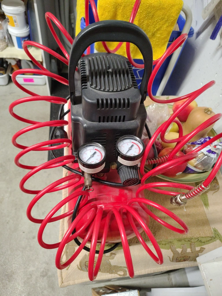 82Selling a red air compressor. It's in good working condition and ready to help with your projects