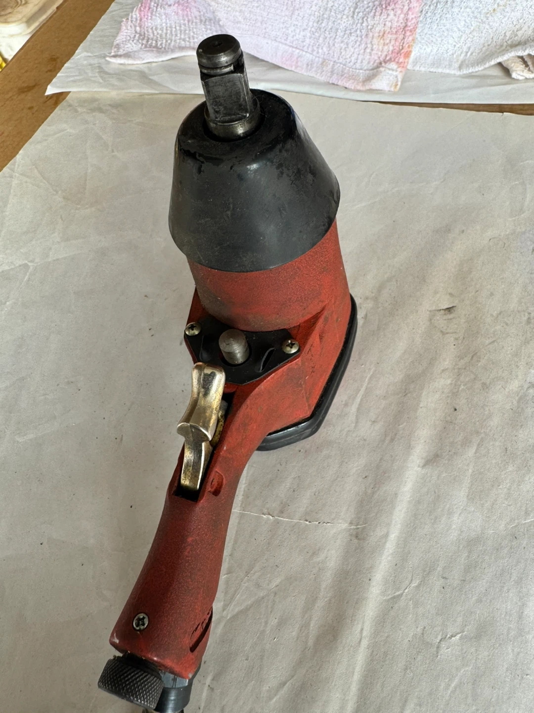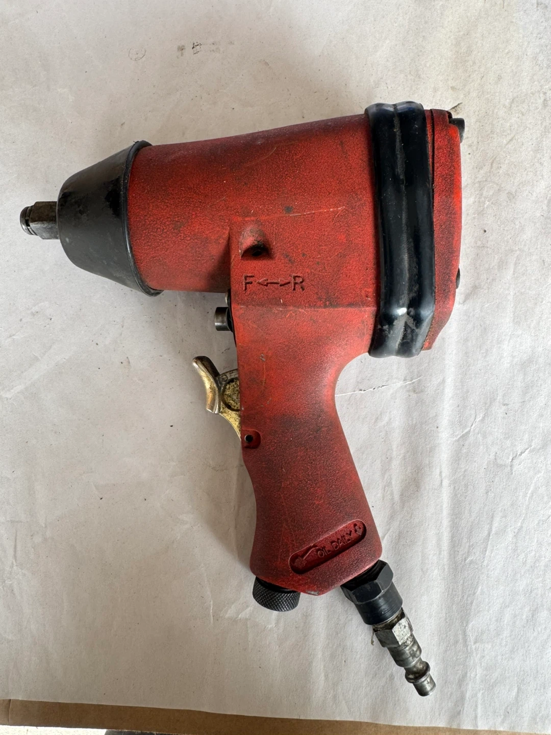 Selling a used red air impact wrench. 1/2 inch drive. It shows signs of wear and use, but is still functional. Perfect for automotive or mechanical work!