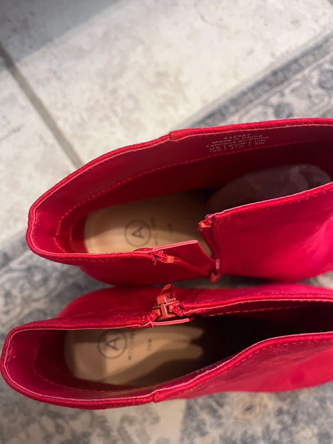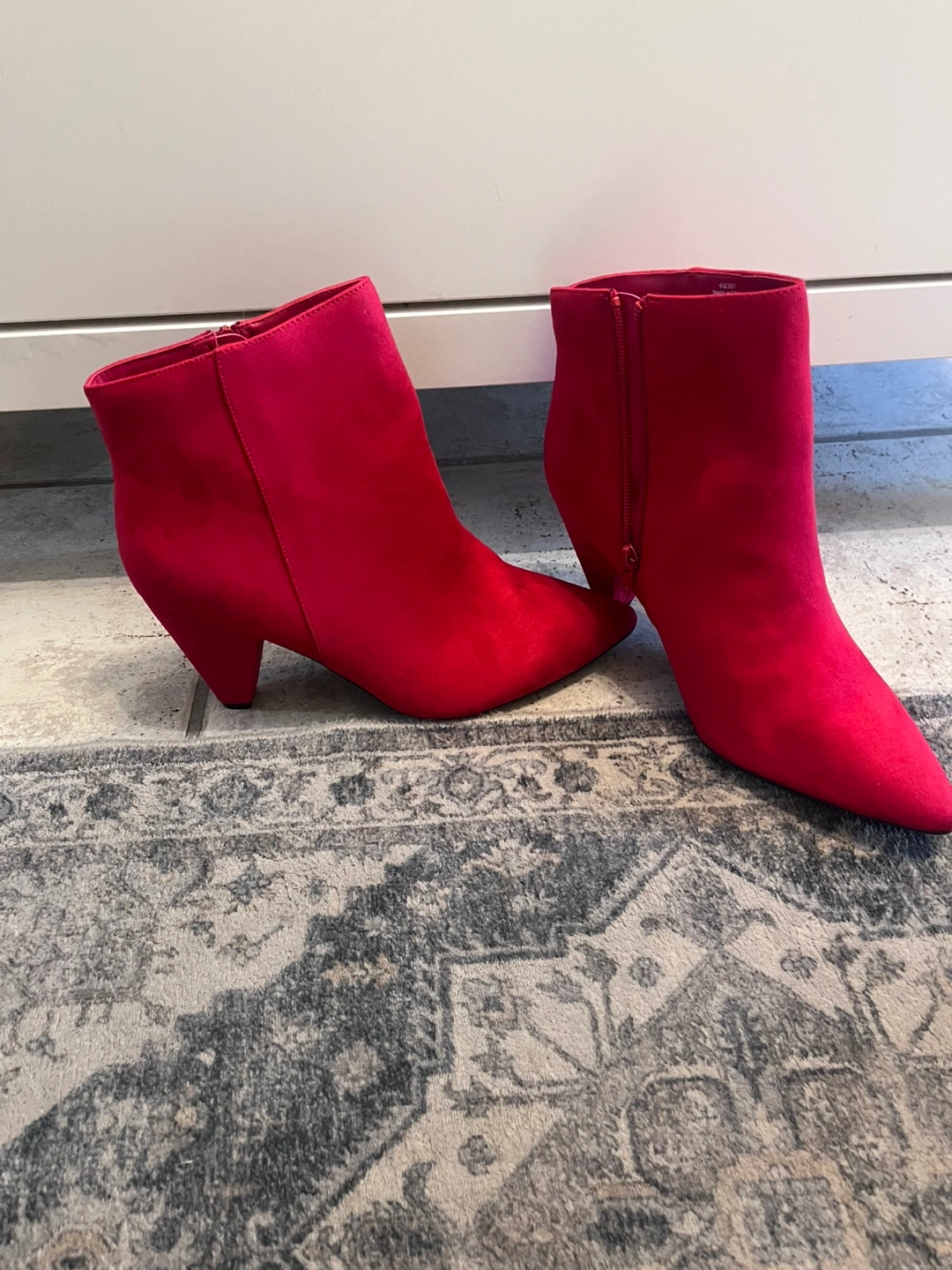 Selling a pair of cute ankle boots in a vibrant red! They're a size 10W and would be a great addition to your wardrobe for a pop of colour