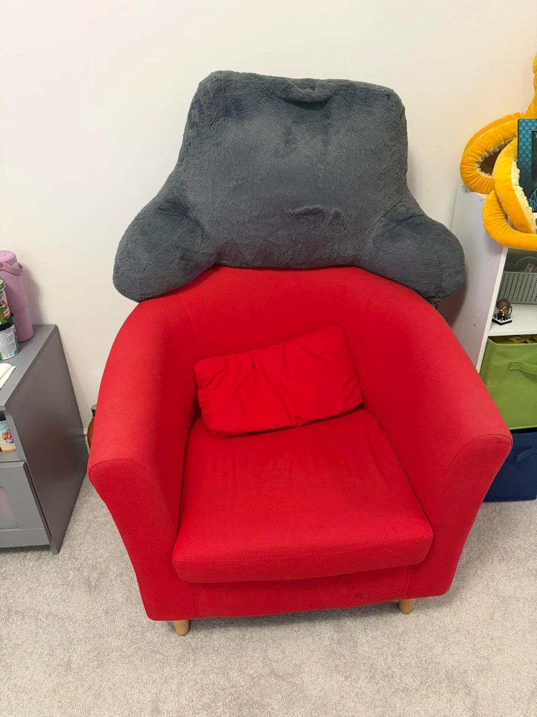 12Selling a vibrant red armchair, perfect for adding a pop of colour to any room! The chair is in good condition and ready for a new home The chair comes with a matching pillow for extra comfort - petfree and smoke free