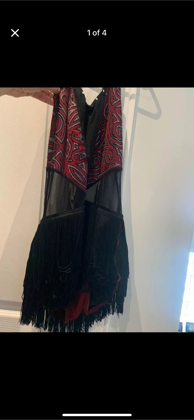 10Selling a beautiful dance dress with a red and black design and fringe detailing. It's in great condition and perfect for performances or practice!