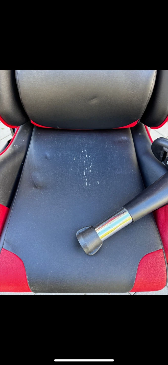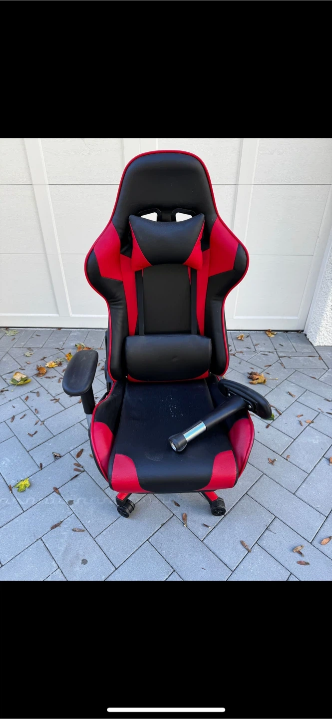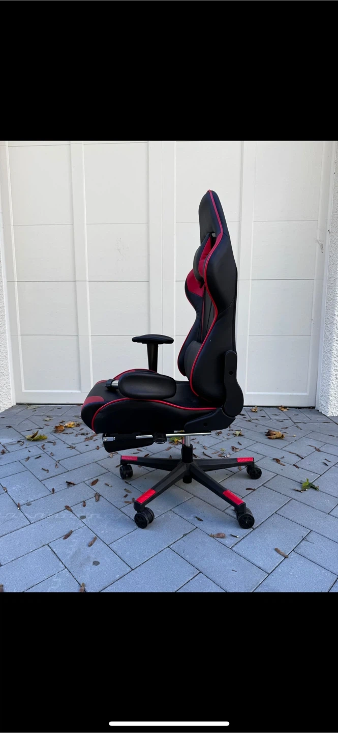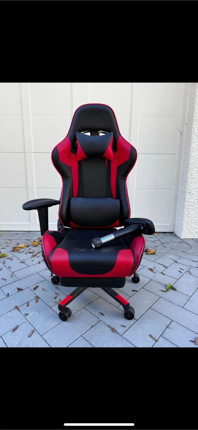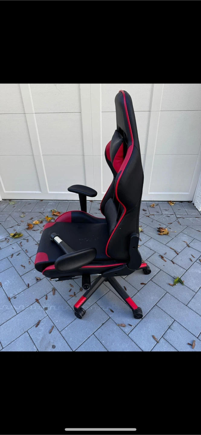 Selling a gaming chair in red and black! It shows some signs of wear on the seat, but otherwise it is still in good condition and fully functional. The arm rest just needs a new screw, super easy fix. It would be great for someone looking for an affordable gaming chair.