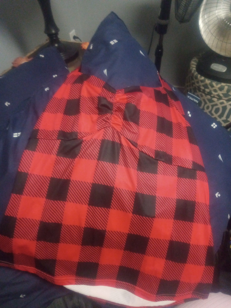 75Here's a cute shirt with a red and black plaid pattern! It's in great shape and ready for a new home. Perfect for adding a pop of colour to your wardrobe