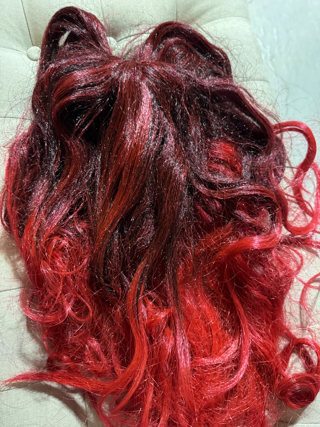 Selling a red and black Ombre wig. It's in good condition and ready for a new home! The colours are vibrant and the style is fun. Perfect for costumes, parties, or just changing up your look!