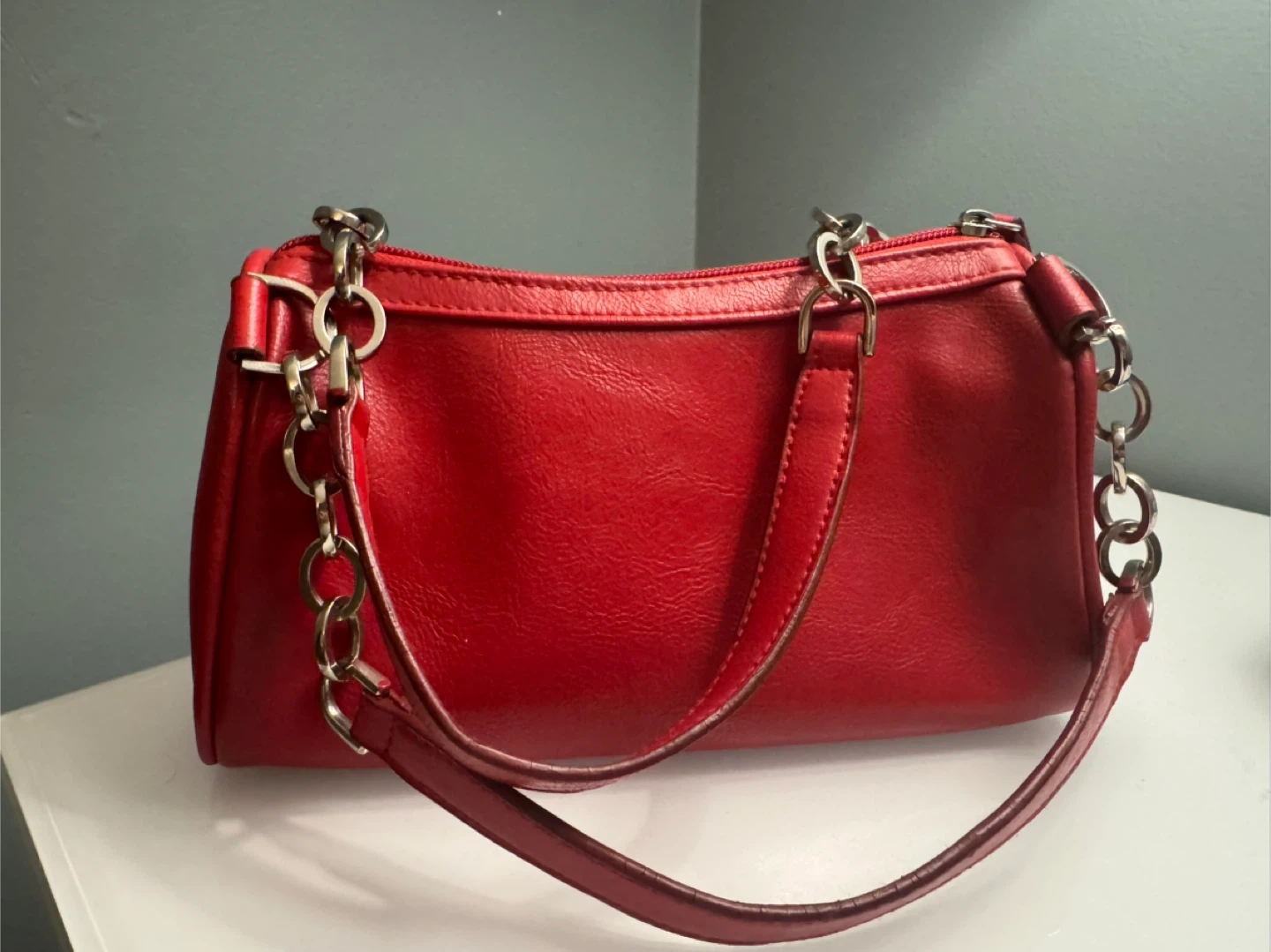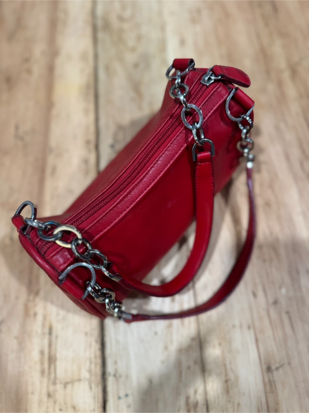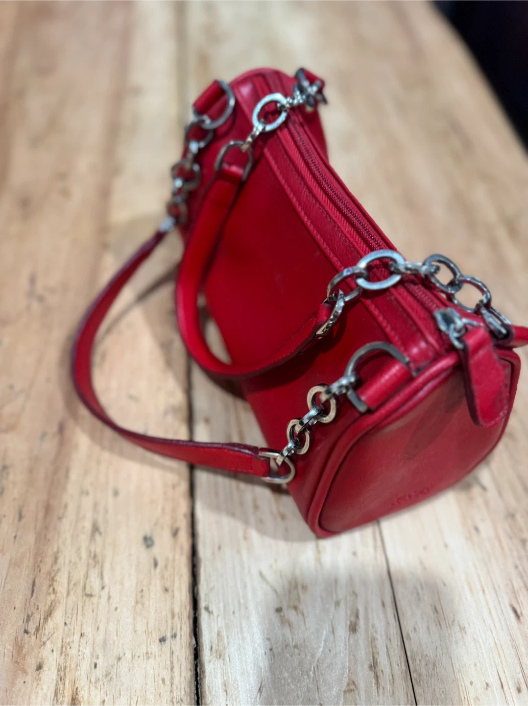 Selling a cute Y2K style shoulder bag! It's a vibrant red colour with chain detailing. Perfect for adding a pop of colour to any outfit