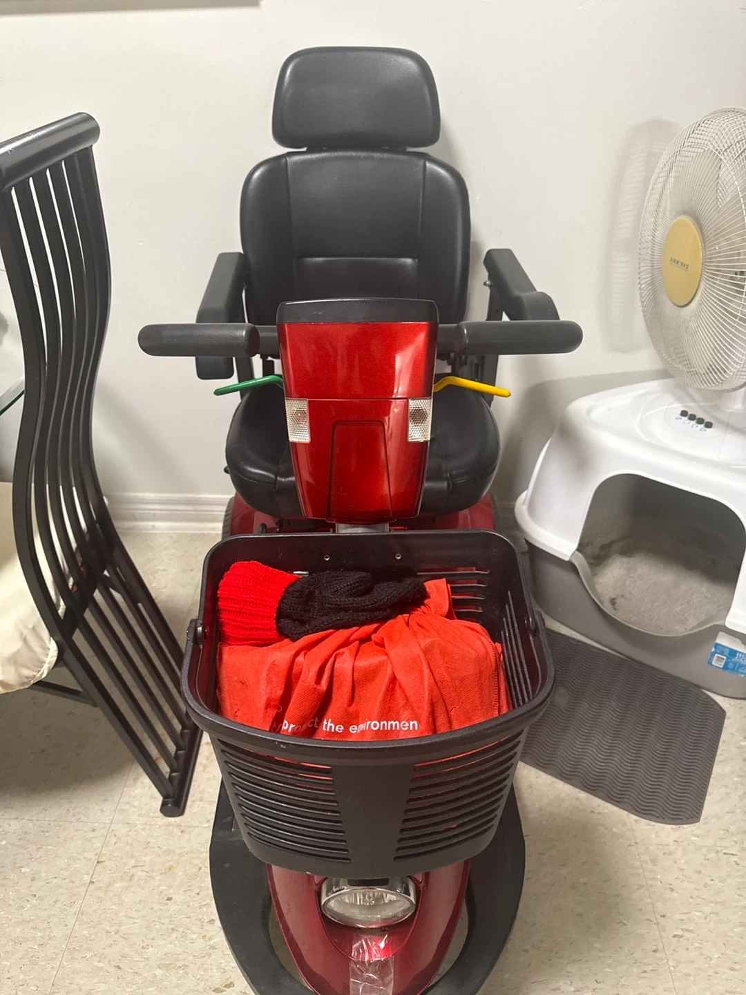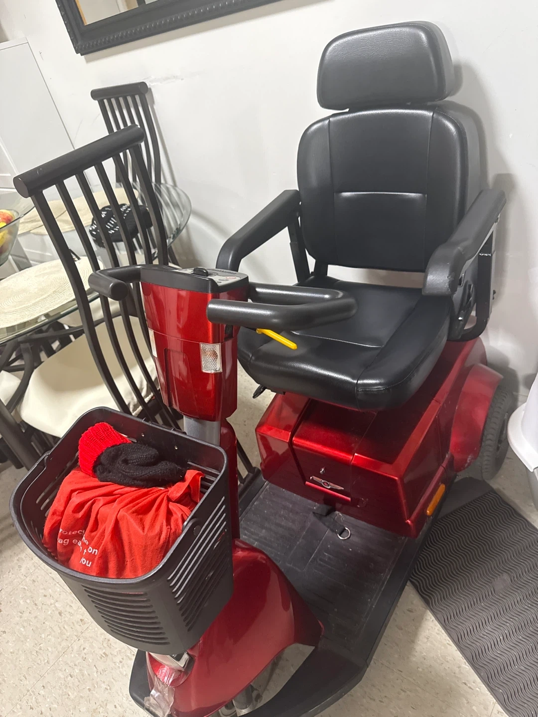 168Selling a red electric mobility scooter! It's in good condition and ready to help you get around with ease. It features a comfortable seat and a handy front basket for carrying your belongings. Weighs I don’t know but my mother was 300 pounds and it works perfectly, thanks God now she walks and she is only 185 pounds.