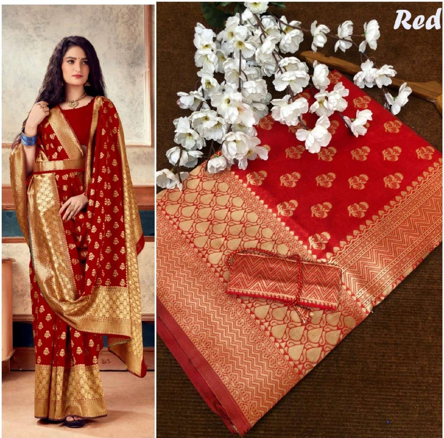 Beautiful red saree with gold detailing! Perfect for a special occasion or adding a pop of colour to your wardrobe