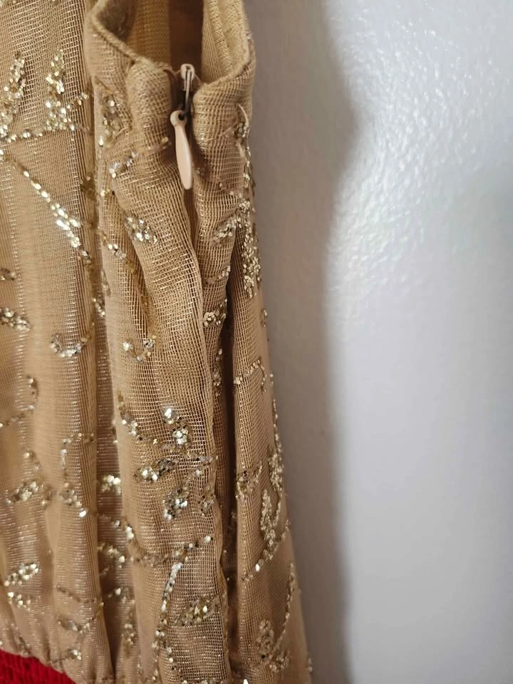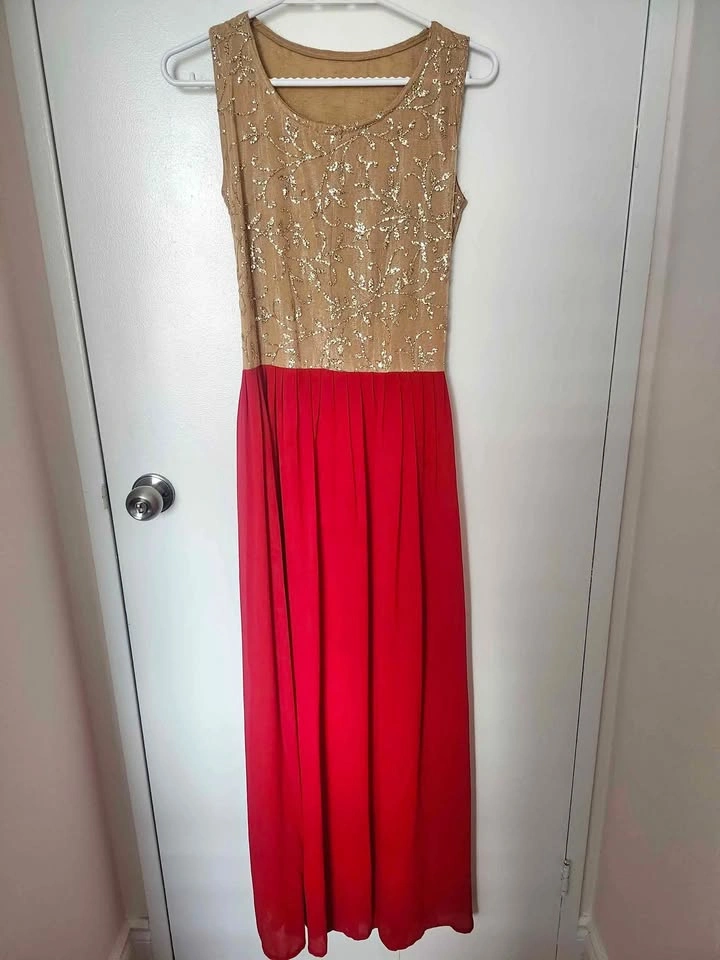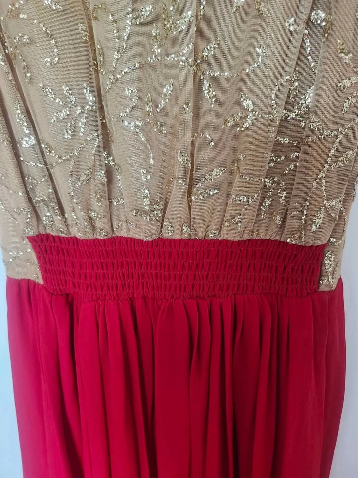 ✨ Red & Gold Sparkle Evening Gown – Size Small ✨