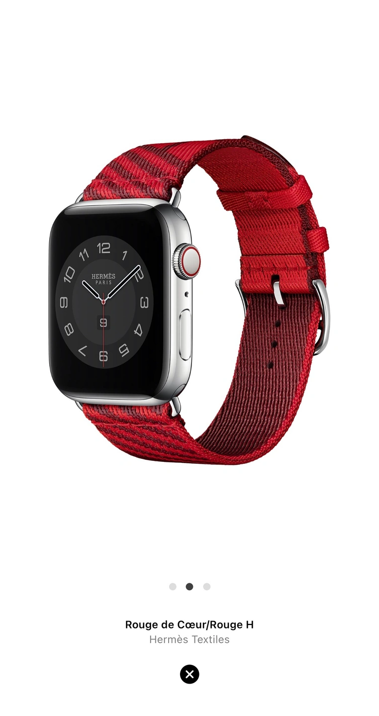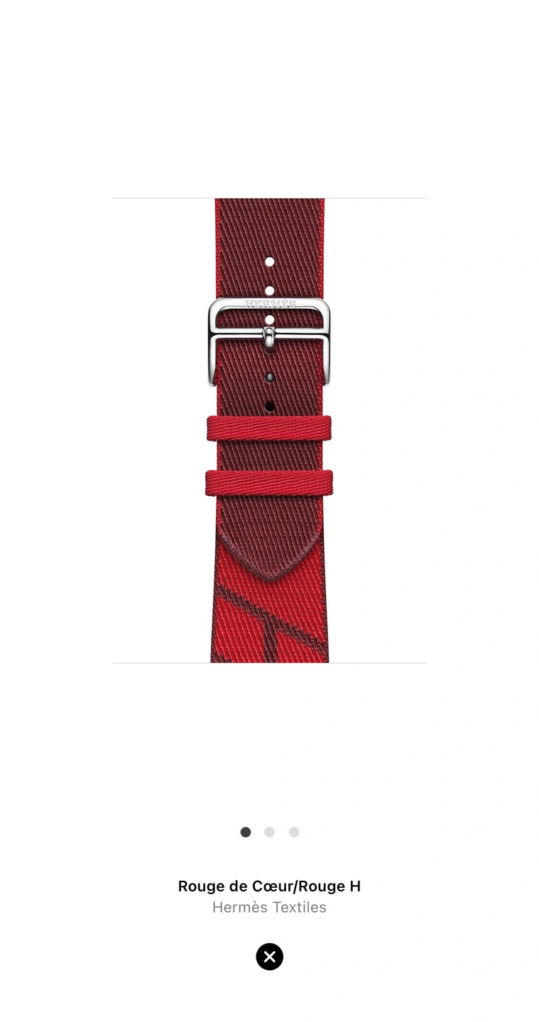 58Product name: Rouge de Cœur/Rouge H - Hermès Textiles/Jumping Single Tour • Colour: Red Hermes. • Size: 44mm/45mm, it will even fit 49mm Apple Watch Ultra • Great condition and sealed. • Reason to resell: Got it as a gift but I don’t use Apple Watch anymore. • Meetup at Markham or willing to find a mid-point.