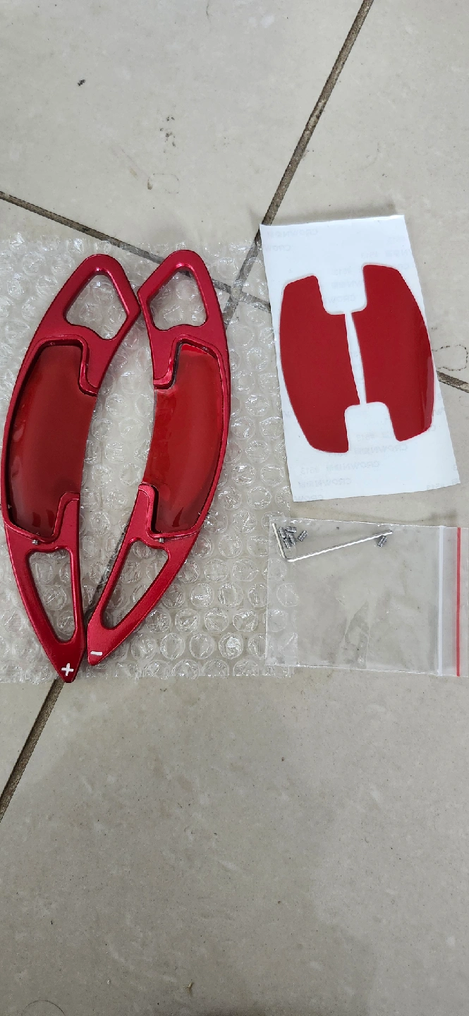 Selling a set of red paddle shifter extensions. They appear to be in new condition and come with the adhesive and screws for installation
