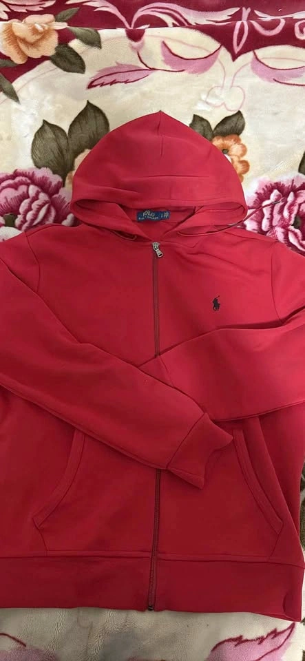 17Classic red Polo hoodie with a full zip and the signature Polo logo on the chest, got as a gift not sure of authenticity. Comfortable and casual, perfect for layering or everyday wear. Shows some light signs of wear but still in good condition.