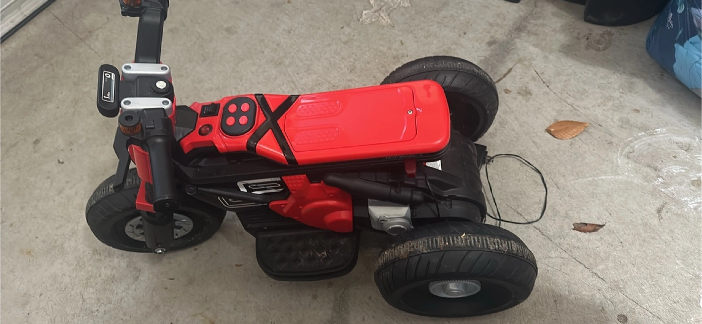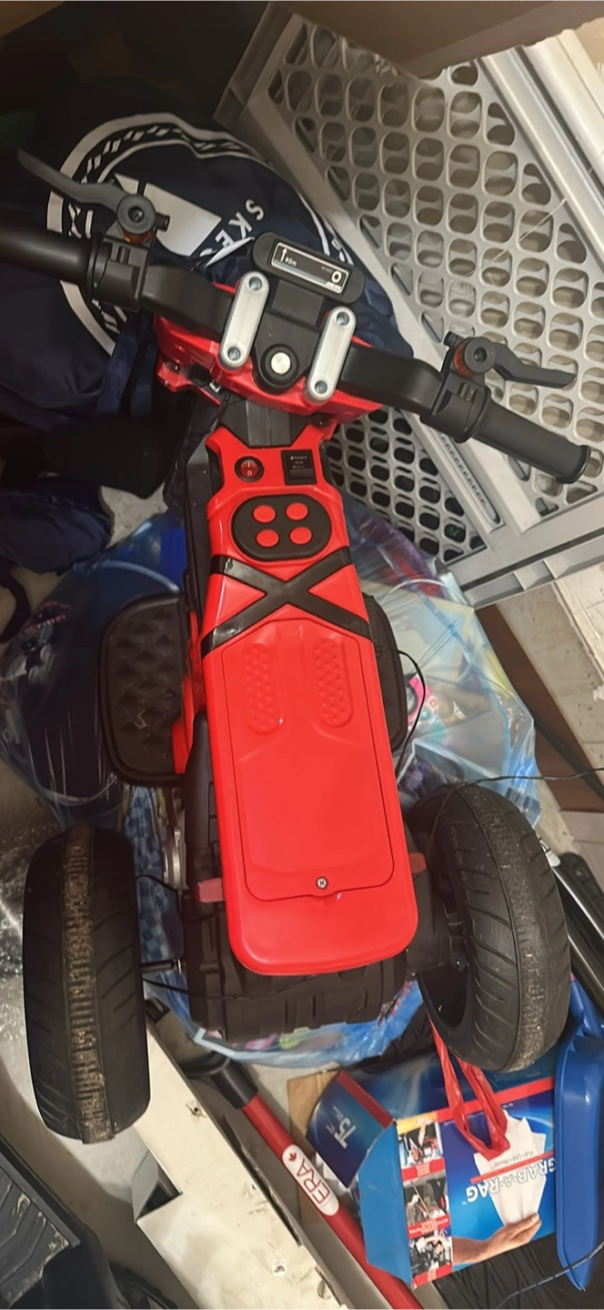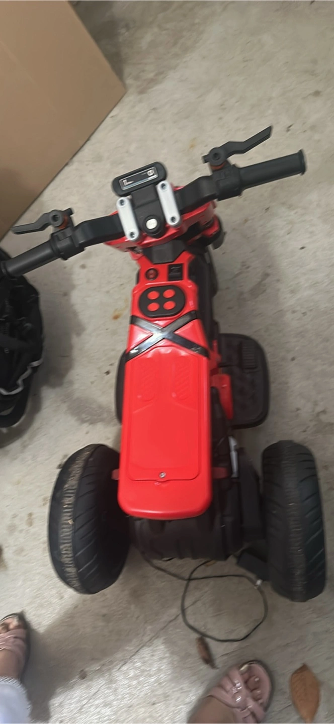 Selling a red ride-on ATV for kids! It looks like it's been well-loved and is ready for a new home. Perfect for outdoor adventures and playtime