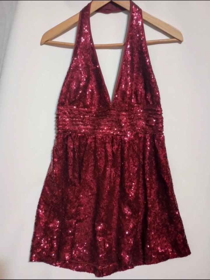 10Sparkle in any ocassion with this fully sequined halter neck mini dress! Barely worn, great condition. Features zipper and adjustable neck clasps.