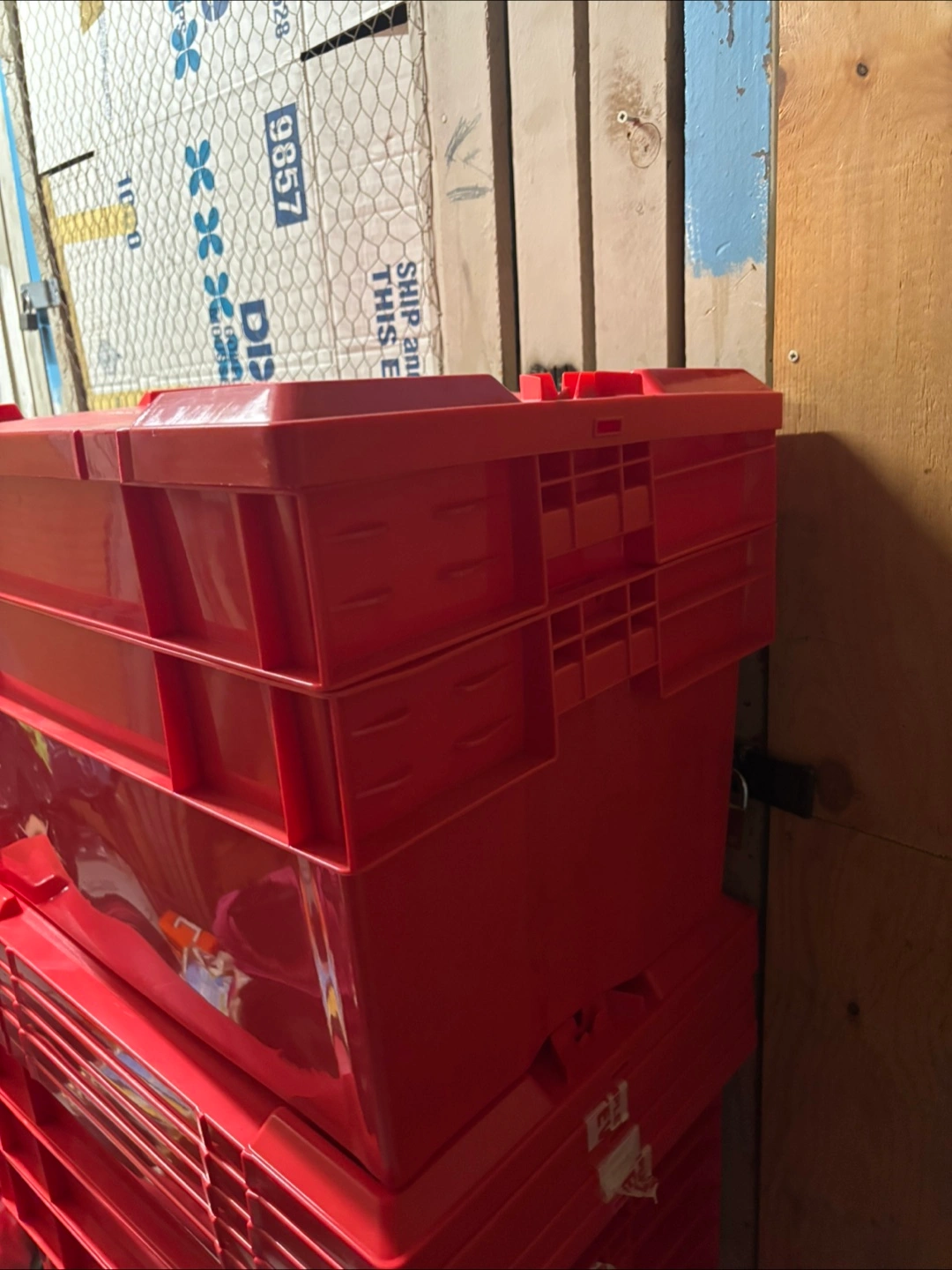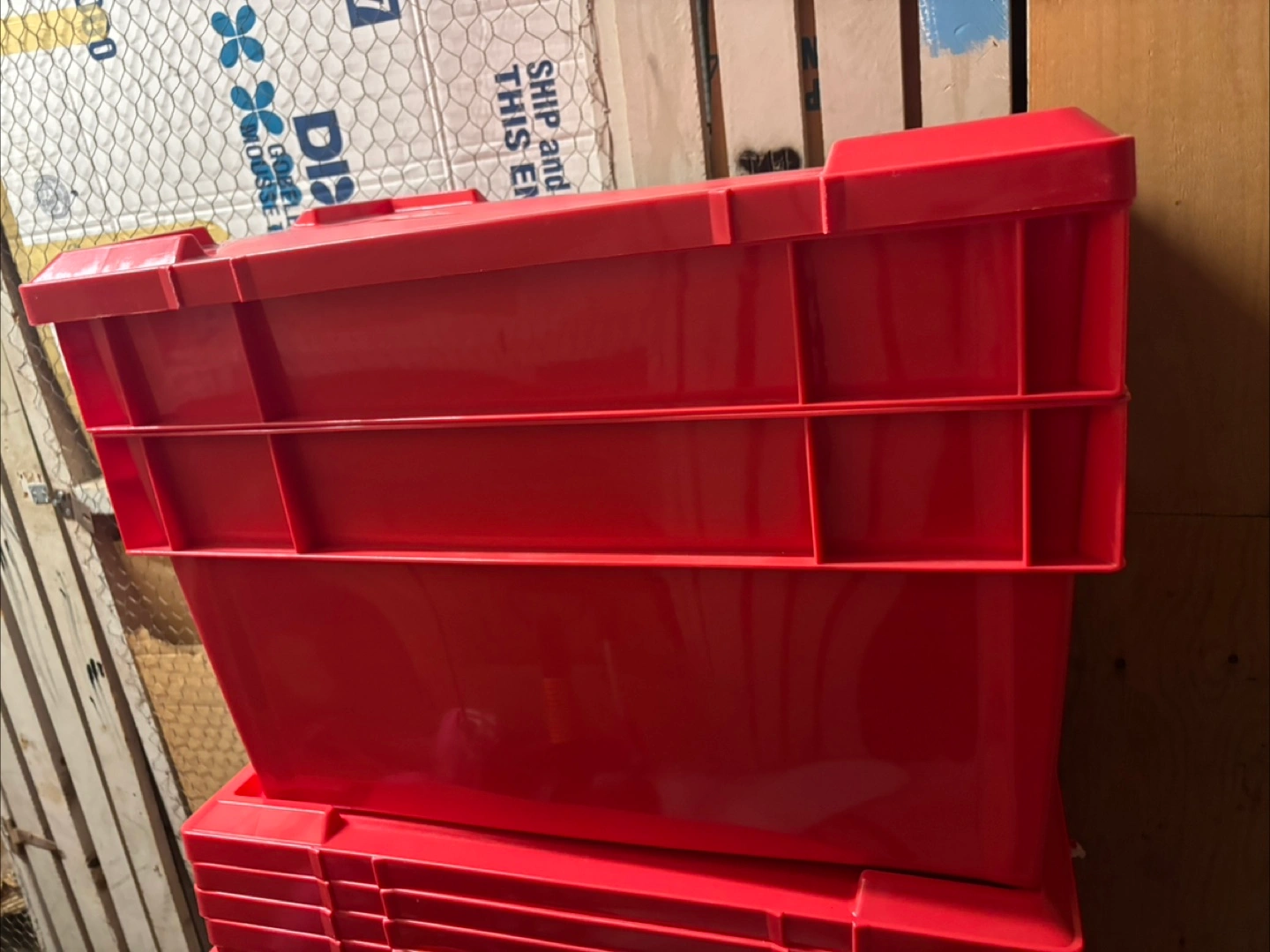 20Selling a few red storage totes. They're great for organizing your space and keeping things tidy. They're in good condition and ready for a new home! These bins are hard plastic and come with a lid similar ones sitting on the Internet for $60-$70