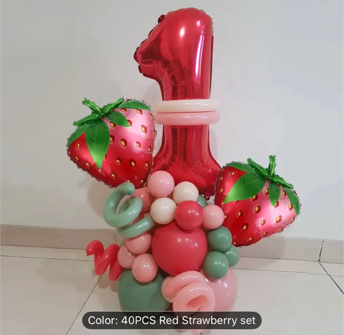 39Add a festive touch to any celebration with this adorable red strawberry balloon set! This set includes 40 pieces to create a fun and eye-catching display. Perfect for birthdays, baby showers, or any special occasion!