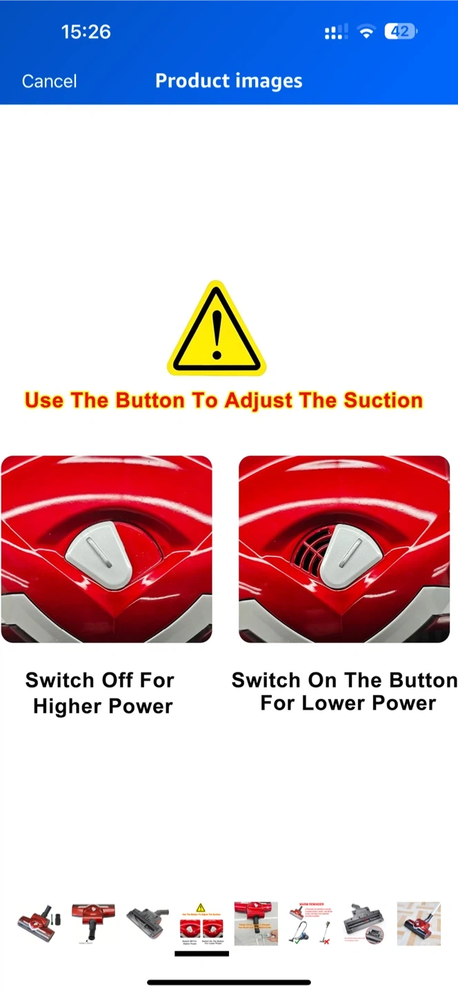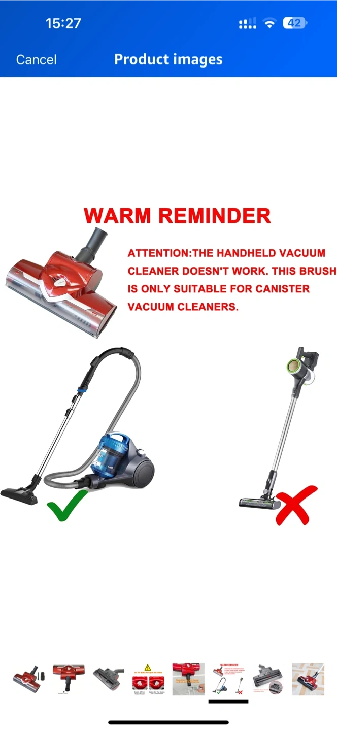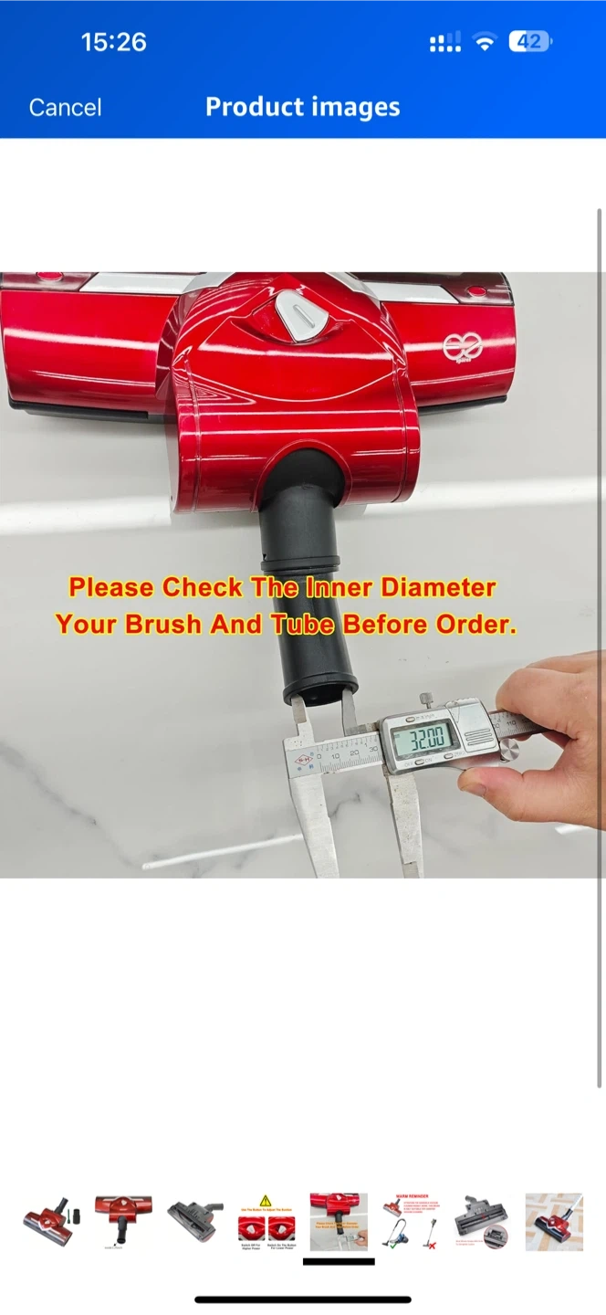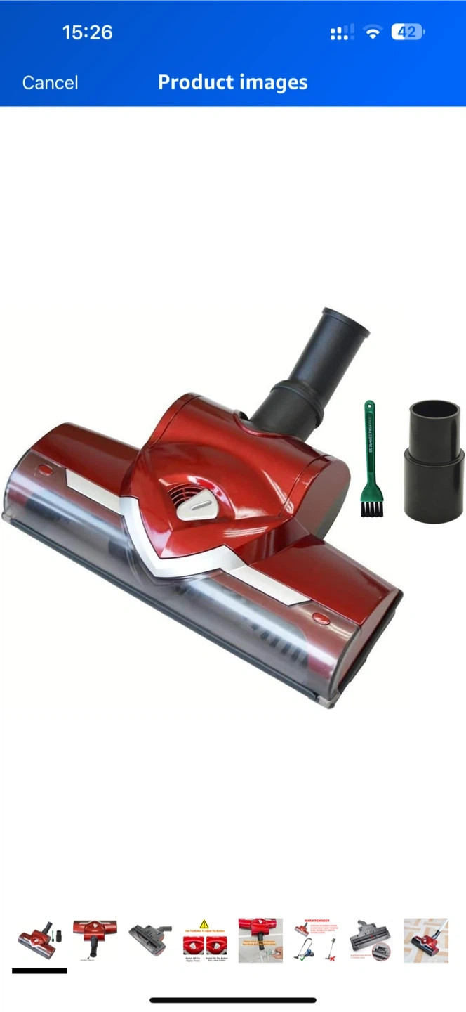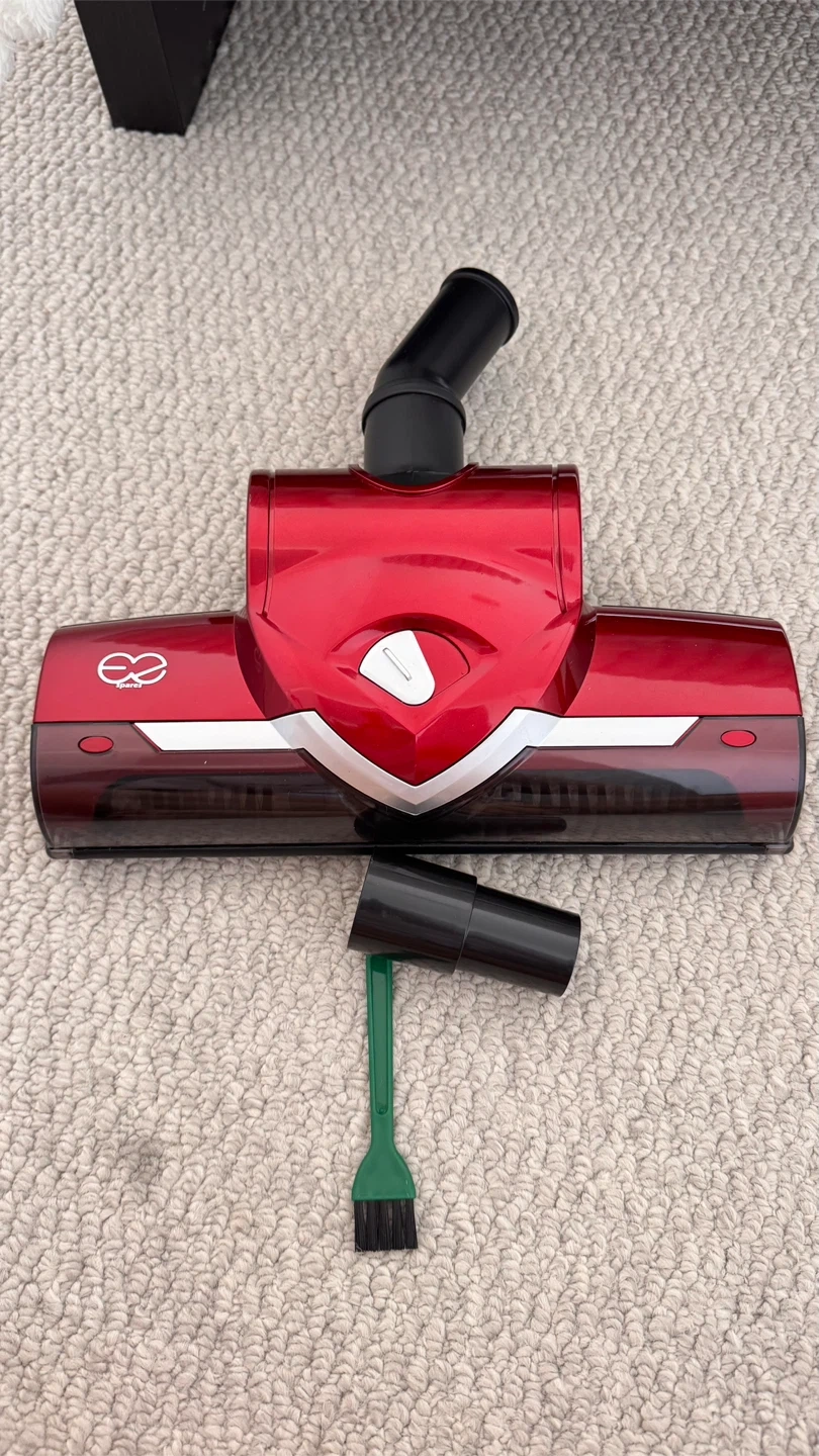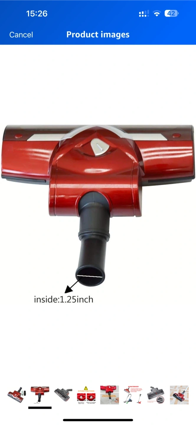 Selling a red vacuum cleaner head attachment. The inner diameter is 1.25 inches. It also comes with a small brush attachment