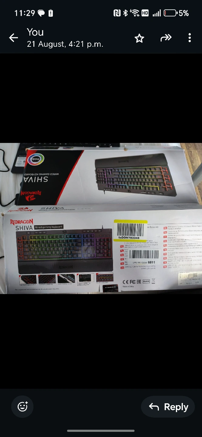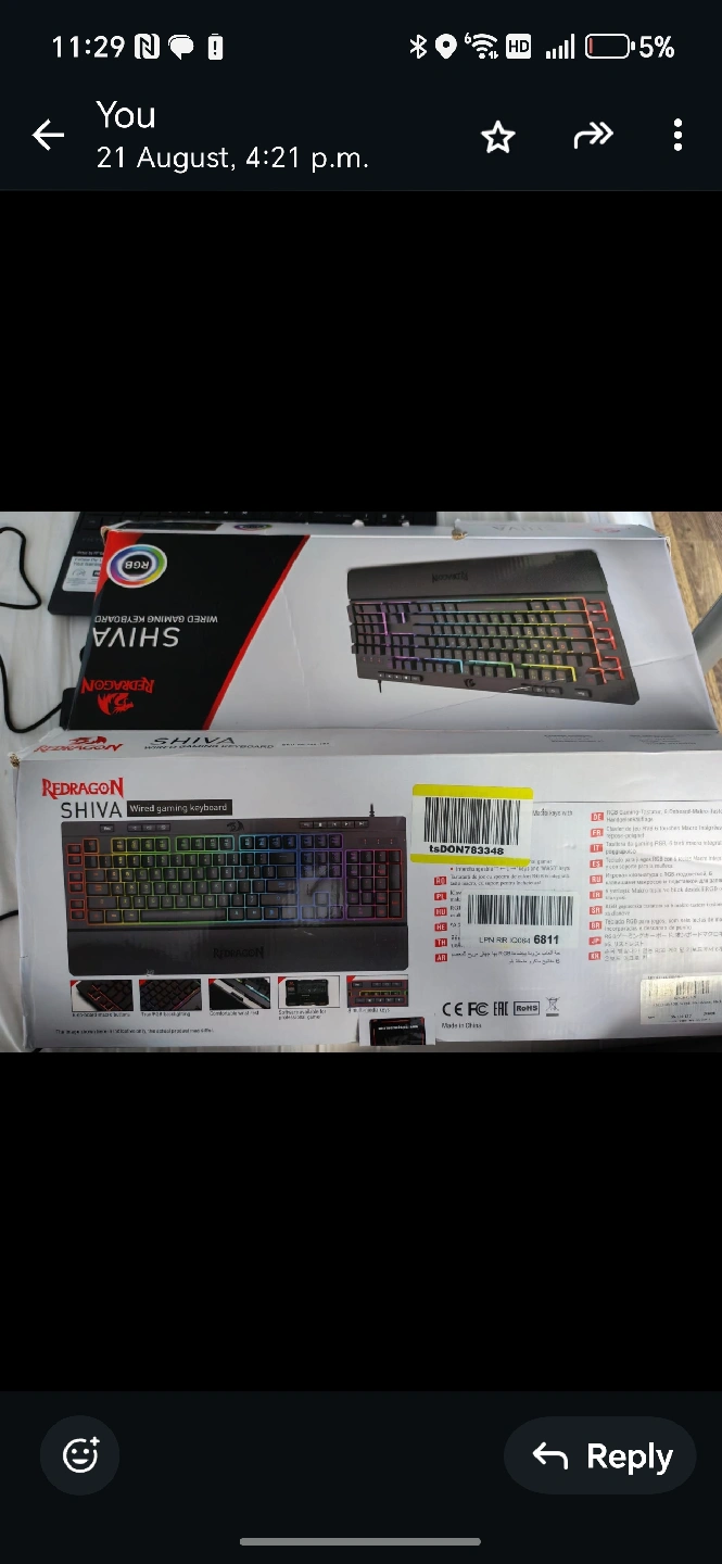 Selling a brand new Redragon Shiva K512 wired gaming keyboard! It comes in its original box. This RGB keyboard is perfect for gaming setups. Get it while it's available