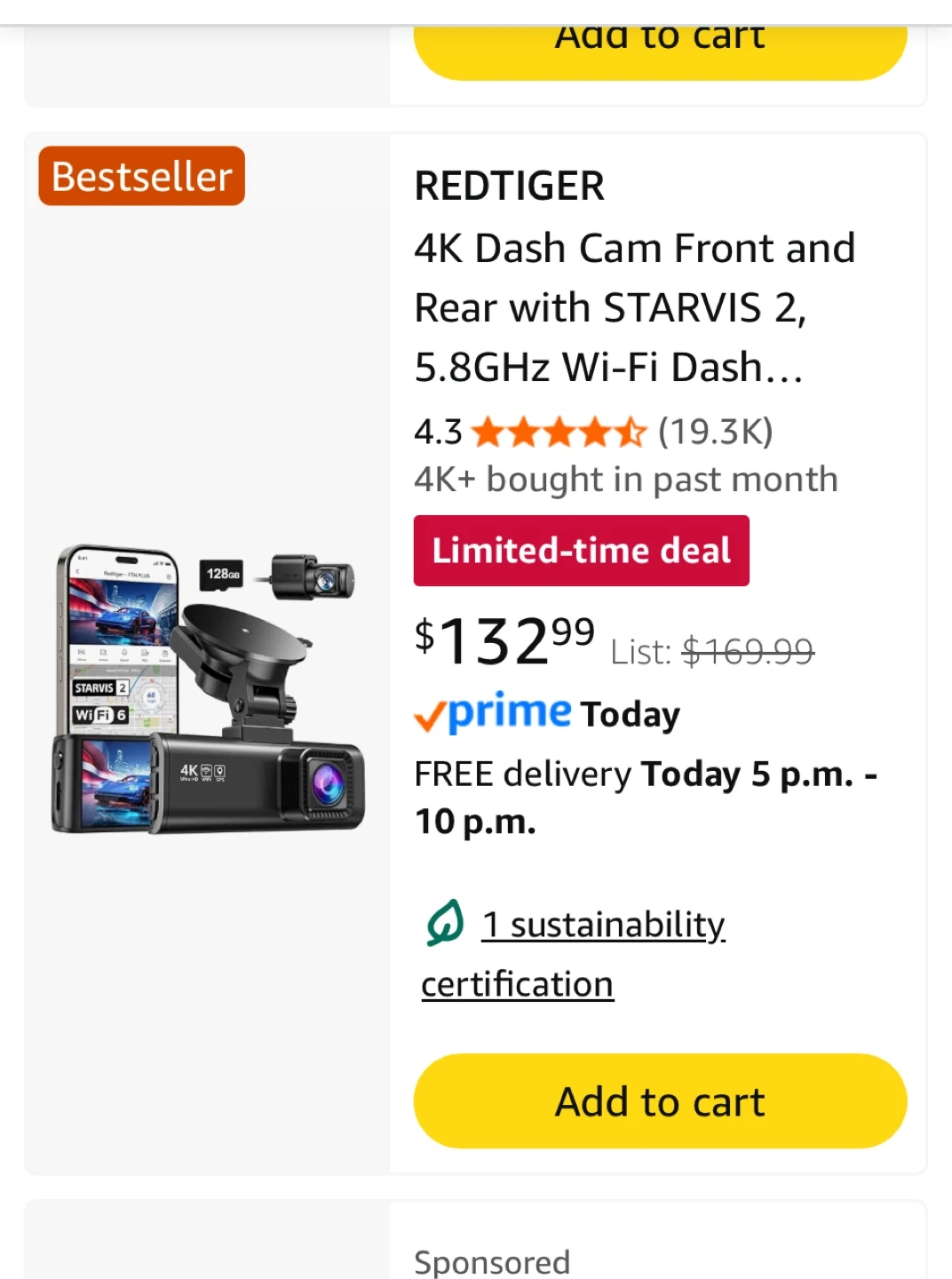84Looking to upgrade your car's safety? I'm selling a REDTIGER 4K Dash Cam, perfect for capturing everything on the road! Key features: - Front and Rear recording - 5.8GHz Wi-Fi connectivity - Includes a 128GB card - GPS - 3.18" IPS screen - Night Vision - 170° Wide Angle - WDR - 24H Parking Mode