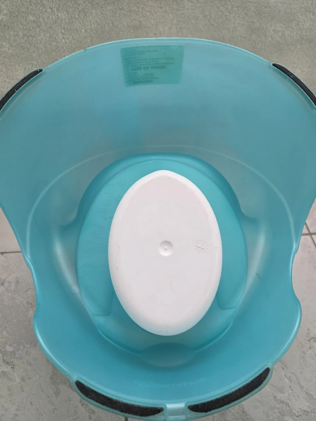 This Summer Infant Lil' Loo toddler potty is designed for easy use and cleaning. It's a blue potty with a white insert. The potty is made of plastic and has non-slip feet for stability. It supports children up to 23 kg.