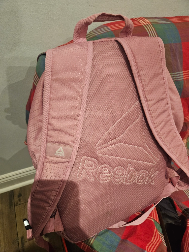 17Selling a Reebok backpack in a lovely pink colour! It's in great condition and ready for a new owner. Perfect for school, work, or just carrying your essentials around town. Has a few pockets for organization and comfortable straps for easy carrying