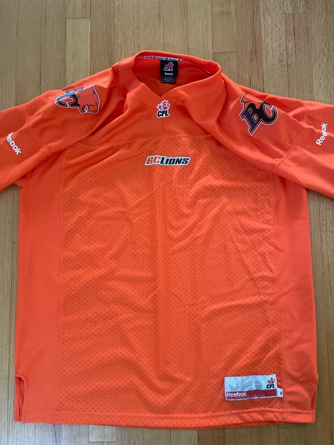 15Selling a Reebok BC Lions CFL jersey in size XL. Blank/no name on the back. Like new, worn briefly when I won it and then stored in a bag since.