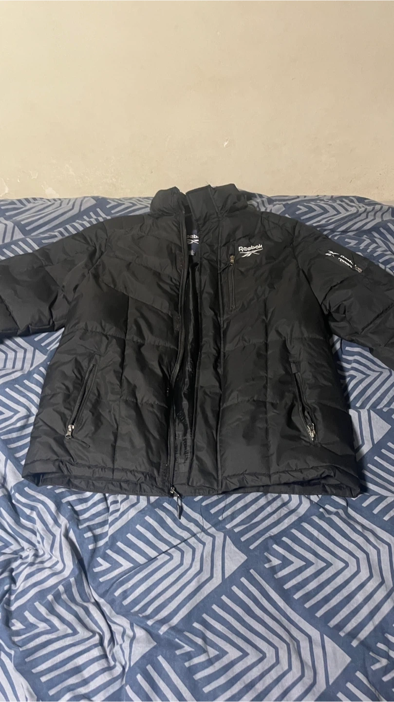 Selling a black Reebok puffer jacket in size L/G. It's in great condition and perfect for staying warm during the colder months!