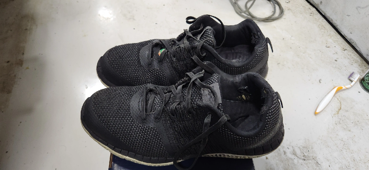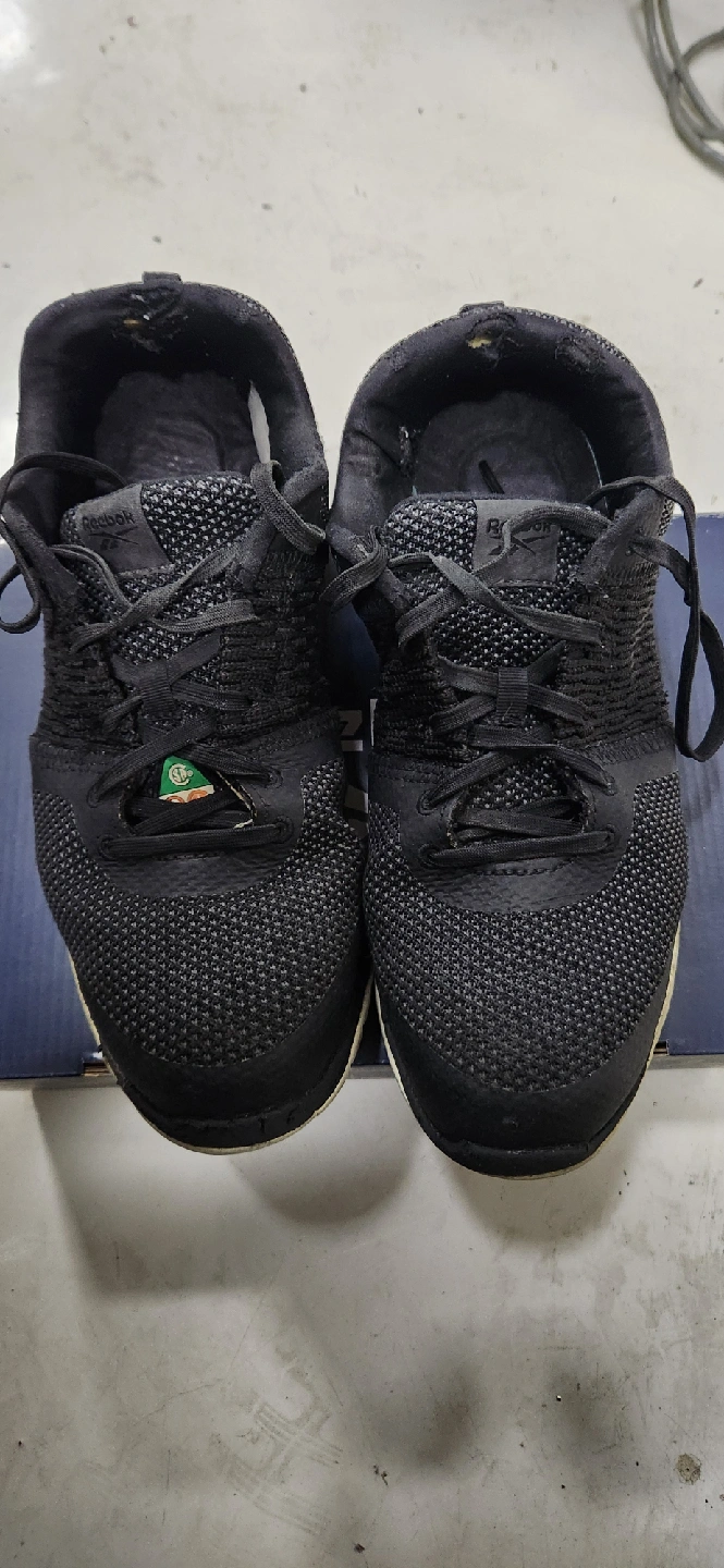 Selling a pair of Reebok safety steel toe shoes in black. They show some signs of wear, but still have lots of life left. the size for men is number 10