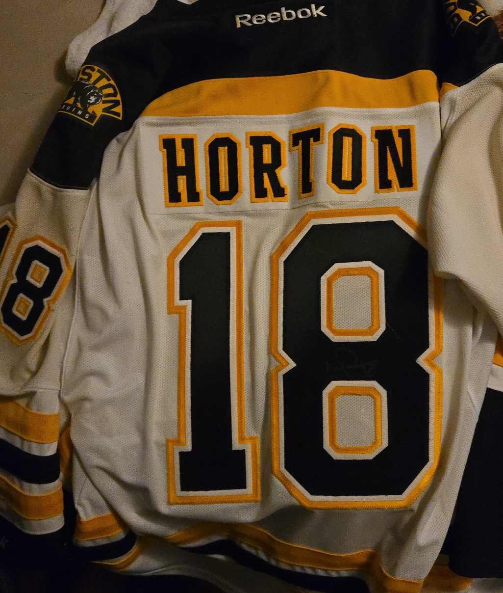 Selling a Reebok Boston Bruins hockey jersey, featuring Horton's name and the number 18. It's in great shape and ready for a new fan!