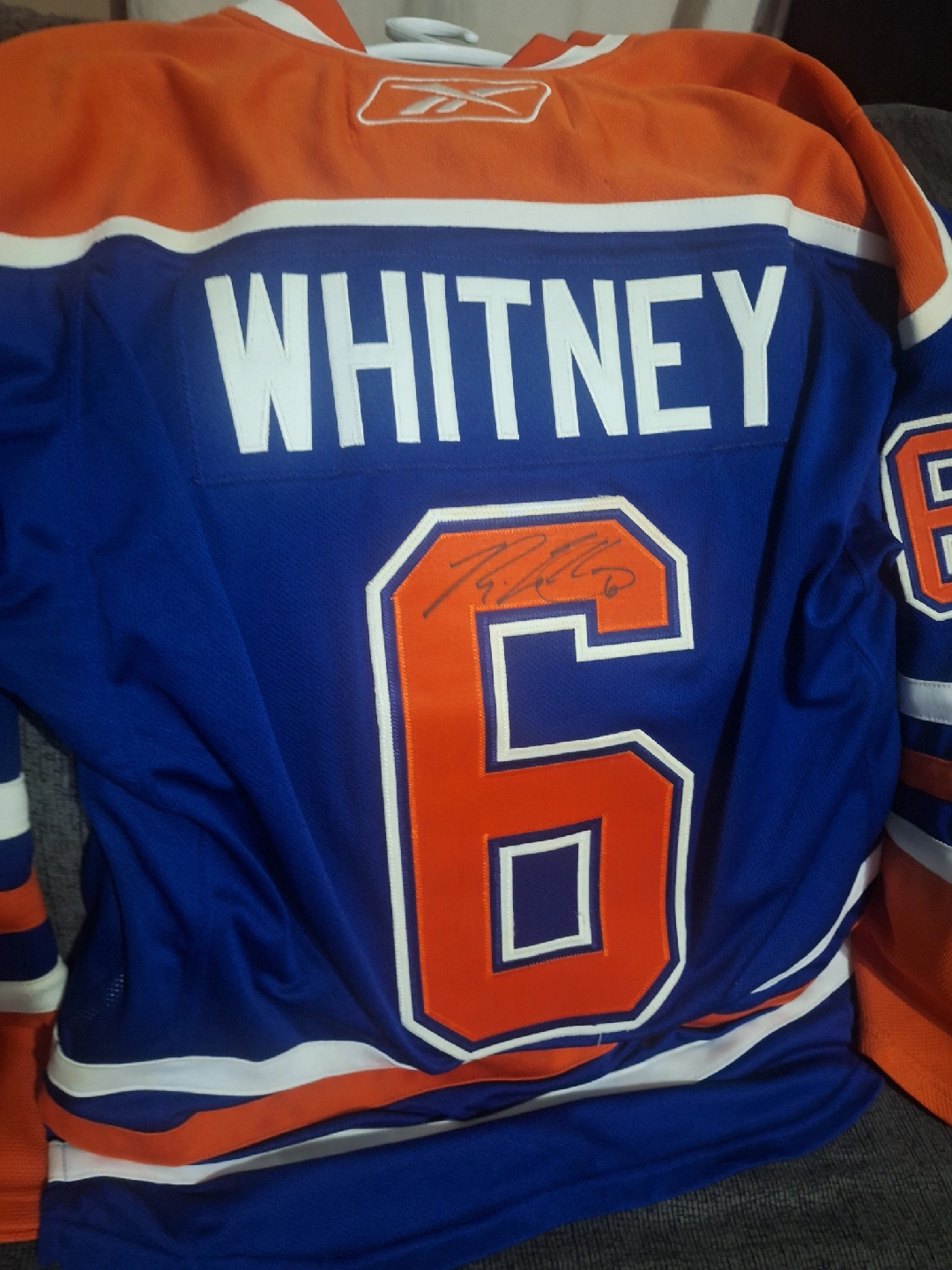60Selling a Reebok Edmonton Oilers hockey jersey, featuring Whitney #6. The jersey is a size medium. signed ๐ซ๐ซ๐ซ