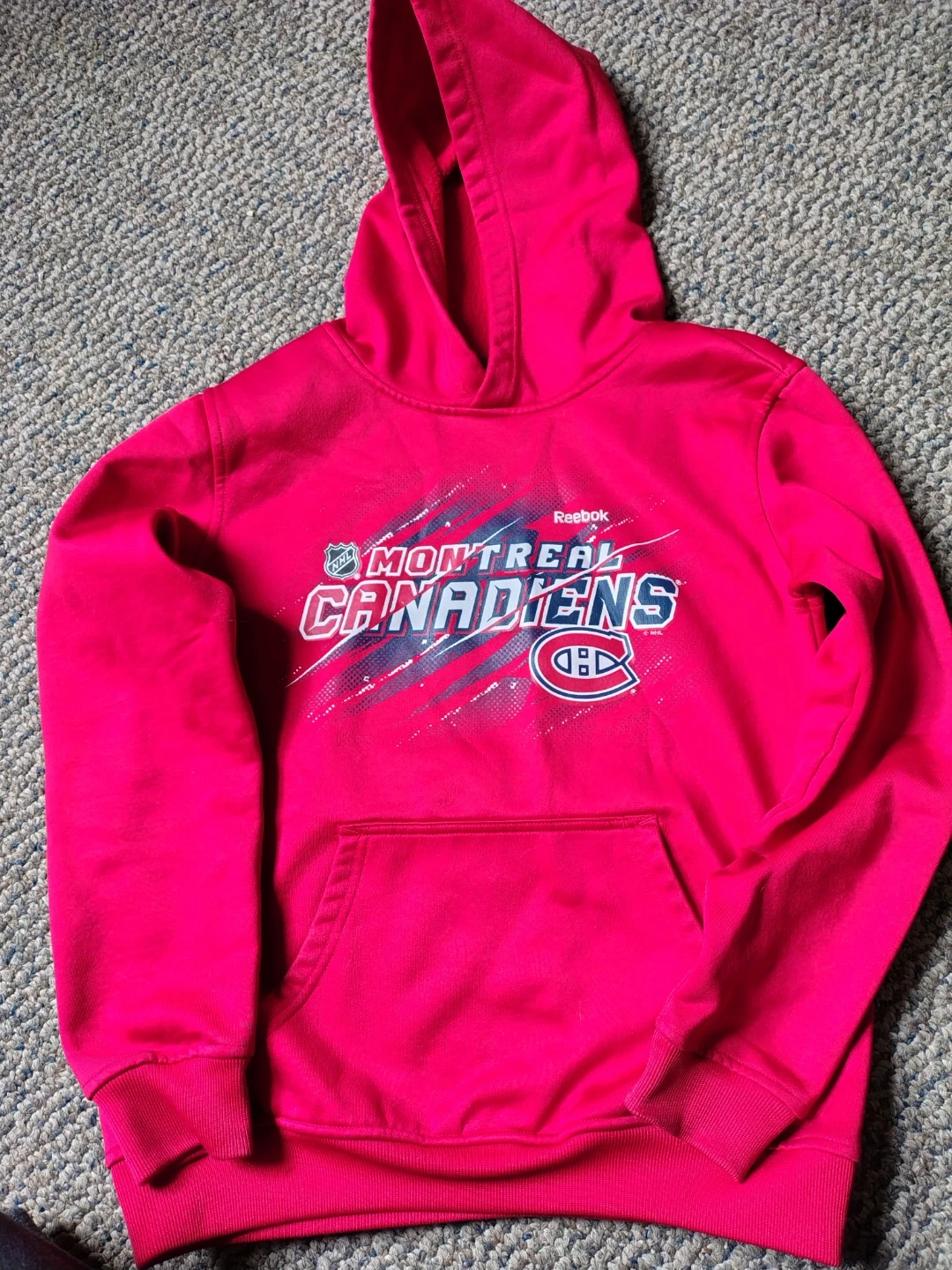 27Selling a Reebok Montreal Canadiens hoodie! This bright pink hoodie features the team's logo and is perfect for any Habs fan. It's in great condition and ready to keep you warm during the games