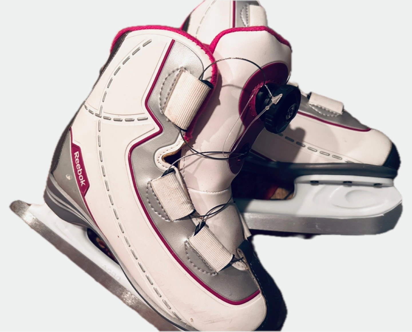 21Selling a pair of Reebok ice skates in white, silver, and pink! They're in great shape and ready for some fun on the ice. Perfect for recreational skating or learning new skills at the rink