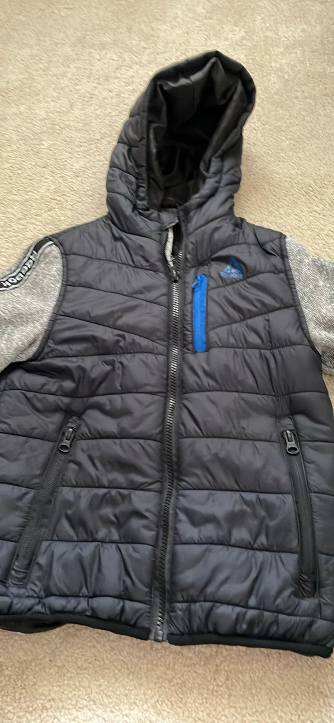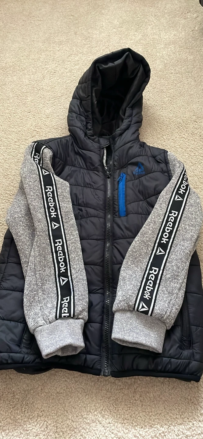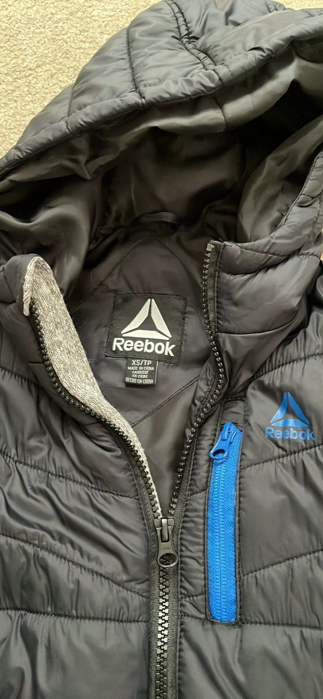 20Selling a Reebok puffer vest with sleeves in size XS/TP! It's black with grey sleeves, and has a hood. Perfect for layering on chilly days! From ns, np home. Brand new.
