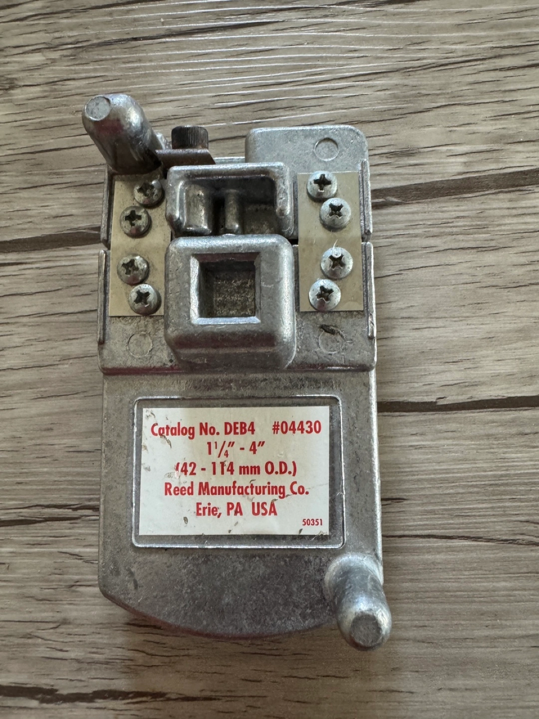 Selling a Reed Manufacturing Co. pipe beveler. Catalog No. DEB4 #04430 Size 1 1/4" - 4" (42 - 114 mm O.D.)