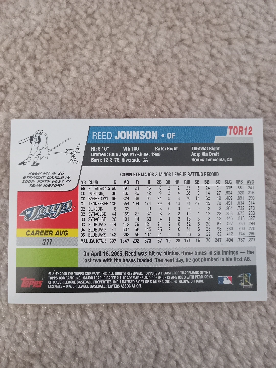 15Selling a Reed Johnson Blue Jays baseball card from Topps. Great for any baseball fan or collector!