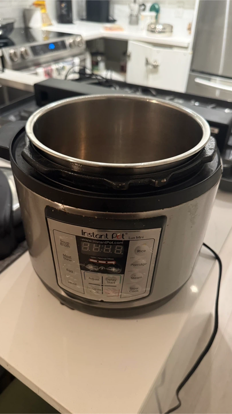 This Instant Pot Lux Mini is a 3-quart multi-cooker. It's great for making soups, stews, and other dishes quickly. It has multiple cooking functions including pressure cook, steam, and slow cook.
