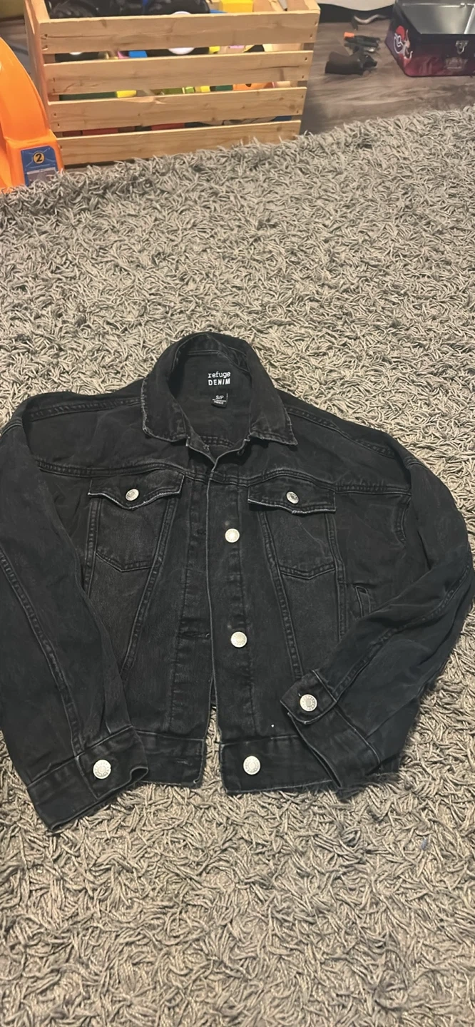 Selling a cute Refuge Denim black jacket in size small. It's in great condition and ready for a new home! Perfect for layering or wearing on its own