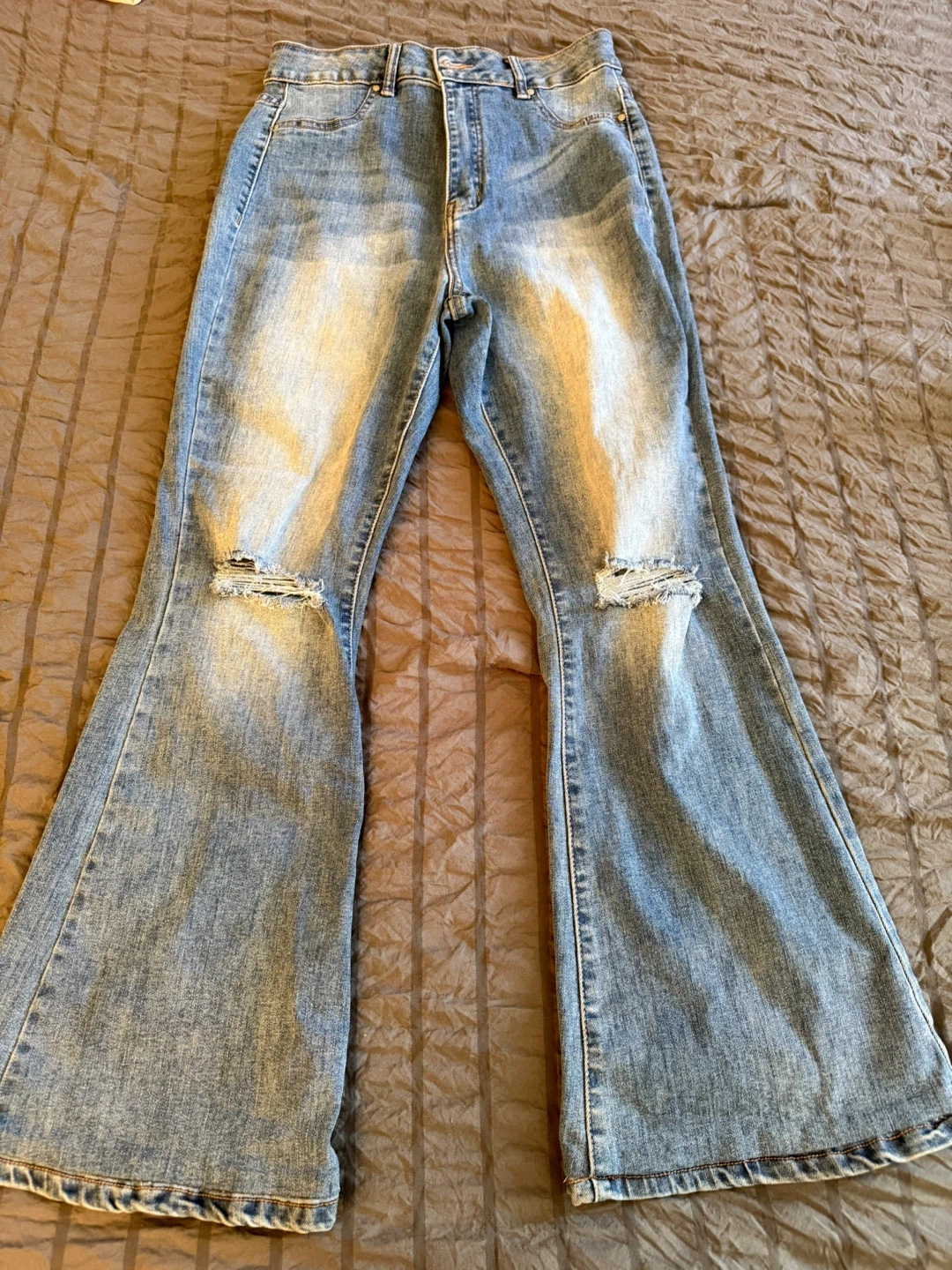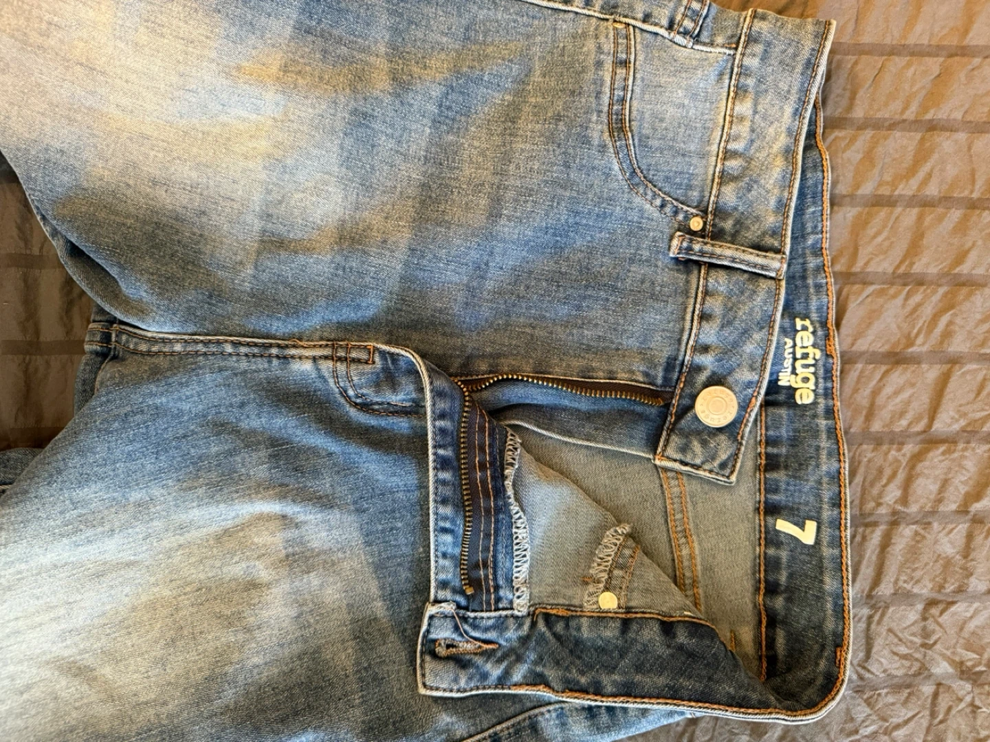Selling a pair of Refuge brand distressed flare jeans in size 7. They're in good condition and ready for a new home!