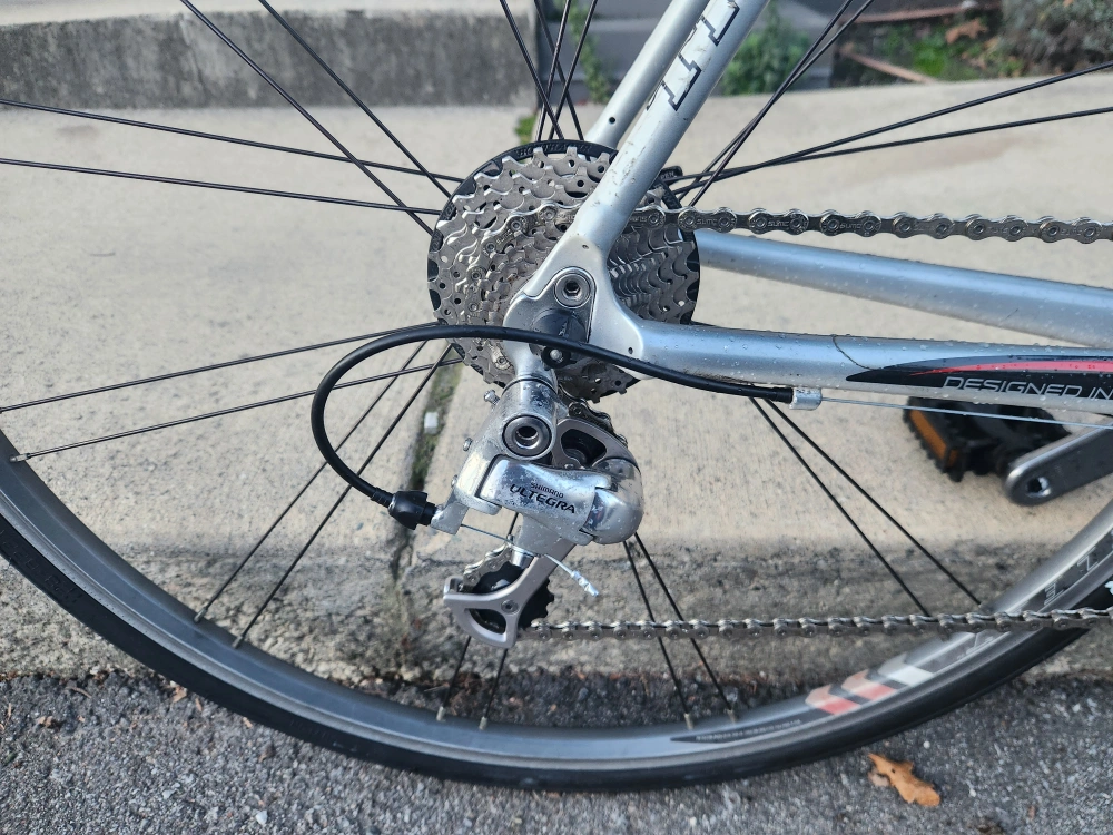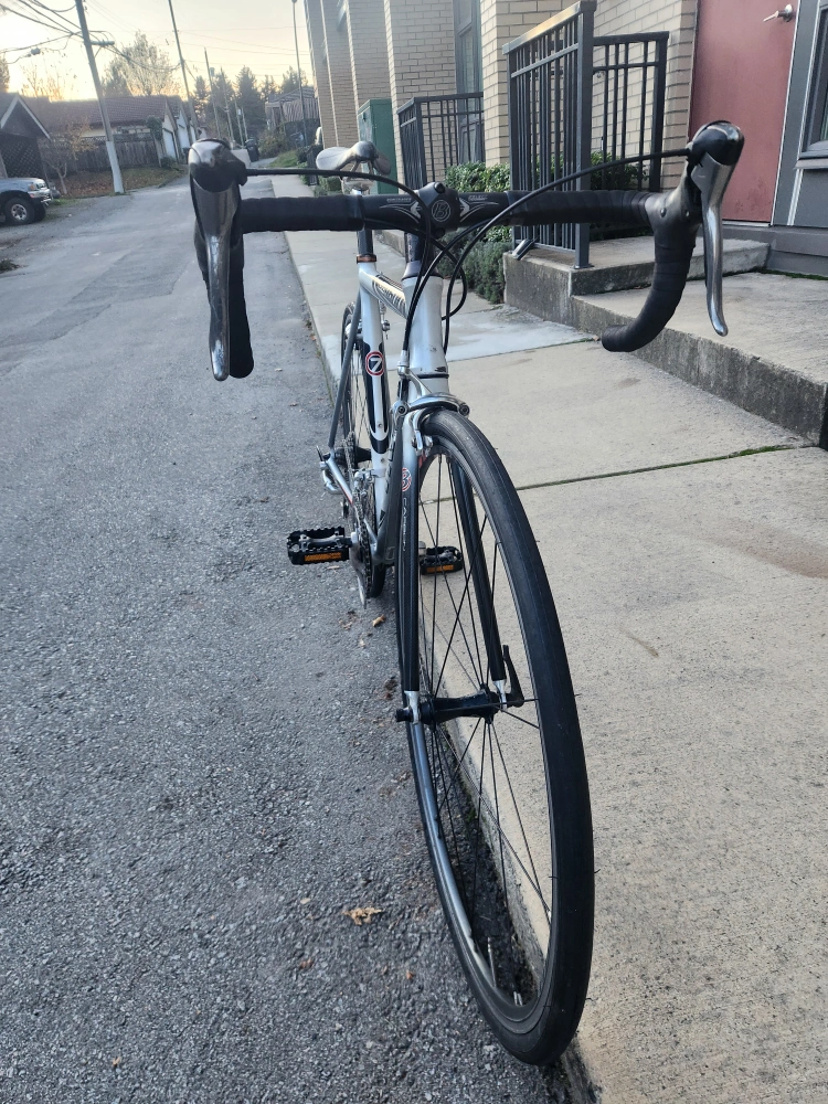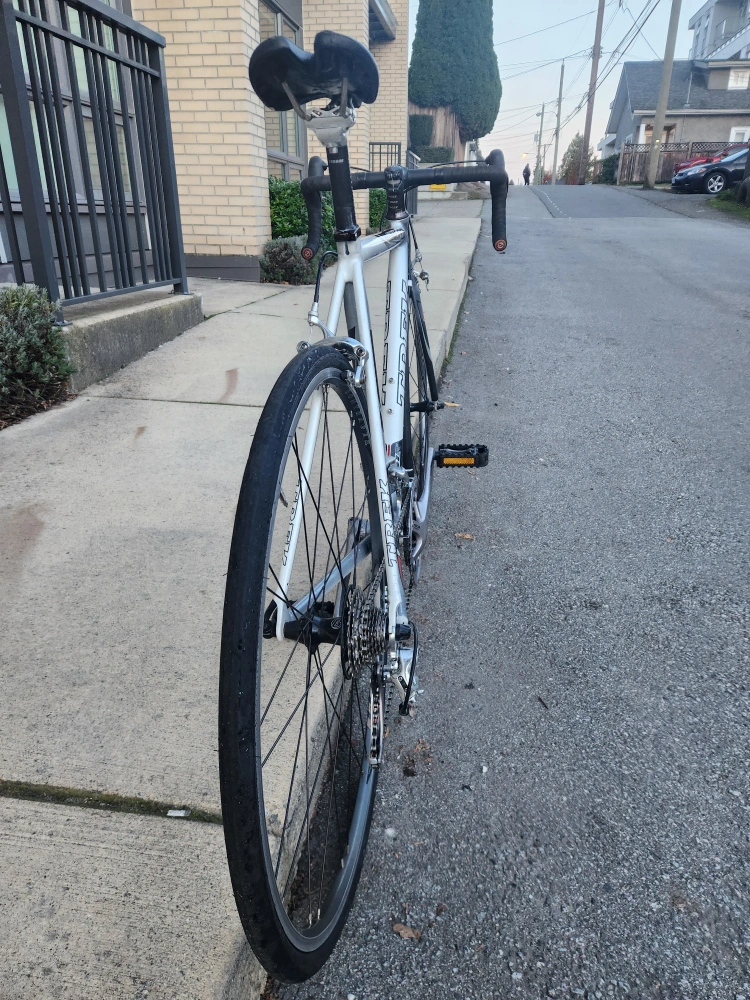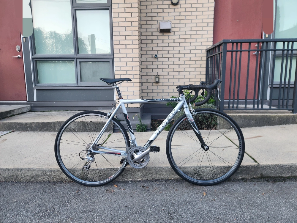 Description: - Used Trek SLR 1600 road bike - Size is Medium (54 cm); should fit somebody 5' 9" to 5' 11" - Uses Shimano 105 5600 groupset with Ultegra rear derailleur; 3 x 10 speeds - Triple crankset allows for extended range, which is no longer available on newer road bikes - An older road bike, but is still very capable and can compare to most entry level road bikes - All components are original except chain and cassette which have been replaced with new ones - Bike is completely refurbished with an overhaul done and all the parts cleaned - New cables, cable housing, and bar tape - New 28c road tires to replace thinner tires - Pedals are some random ones, for test riding; a better set of pedals are recommended (the bike came originally with a set of older SPD pedals which has some issues but can be included) - Bike was well used and has minor scratches and paint chips, but do not affect bike structurally *After services are possible with free inspections and discounted service Specifications: -Frame: Alpha SLR Aluminum with carbon fork - Headset: Aheadset w/semi-cartridge bearings, semi-integrated, sealed, alloy - Stem: Bontrager Select, 17 degree, 31.8mm - Handlebar: Bontrager Select VR, 31.8mm - Saddle: Bontrager Race Basic - Seatpost: Bontrager Carbon, 27.2mm - Pedals: Alloy/nylon road w/clips and straps (available, but stripped on one end) - Groupset: Shimano 105 5600 - Rear Derailleur: Shimano Ultegra 6600 - Front Derailleur: Shimano 105 5600 - Crankset: Shimano 105 5600 50/39/30 - Shifters: Shimano 105 5600 STI, 10 speed - Cassette: Shimano HG 11-30, 10 speed - Chain: SUMC, 10 speed - Brakes: Alloy dual pivot (no brand) - Wheels: - Rims: Bontrager Select - Tires: CST Czar, 700x28c Price: - $499 obo - Will consider trades for road bike related items - Payment in cash or e-transfer Pick-up only near Ontario and SW Marine Dr.